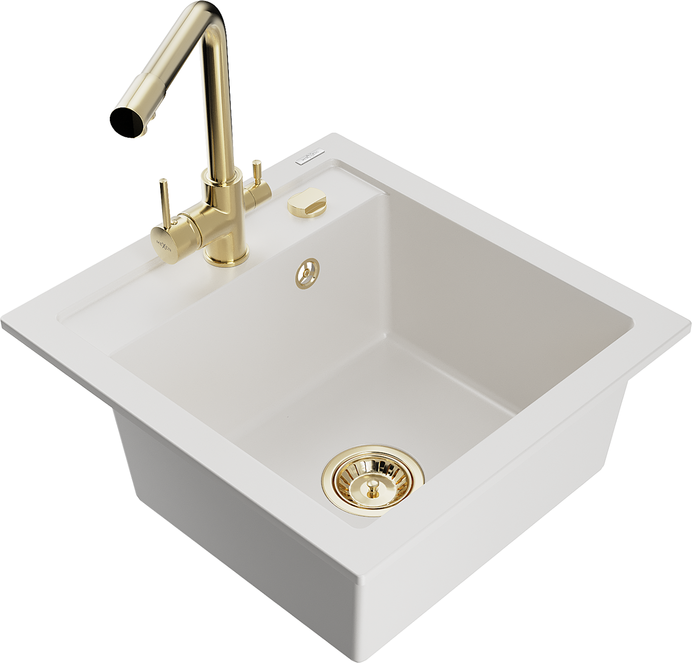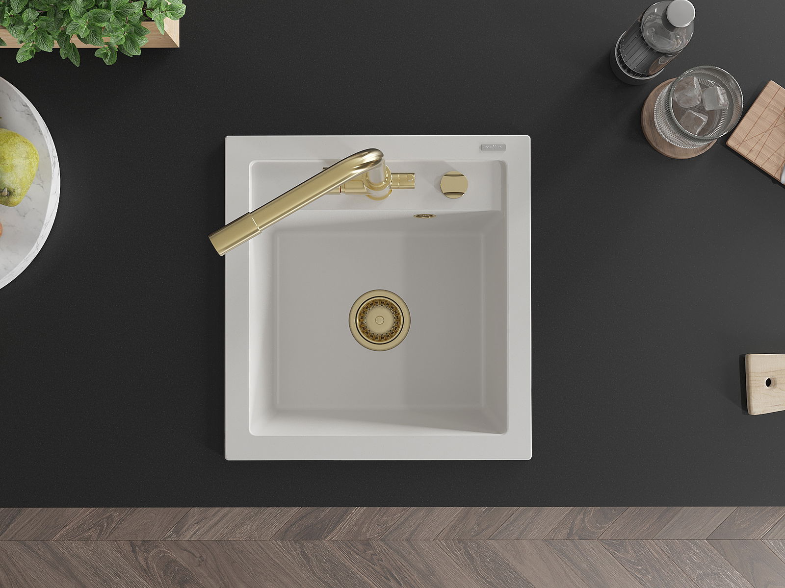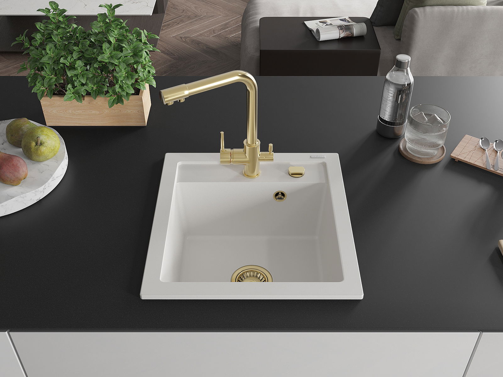 Mexen Vito zlewozmywak granitowy 1-komorowy z baterią kuchenną Duero, biały - 6503-20-671600-50