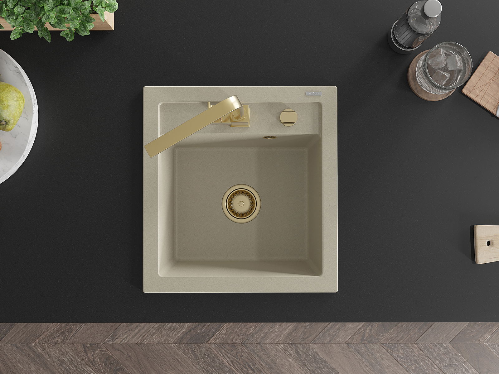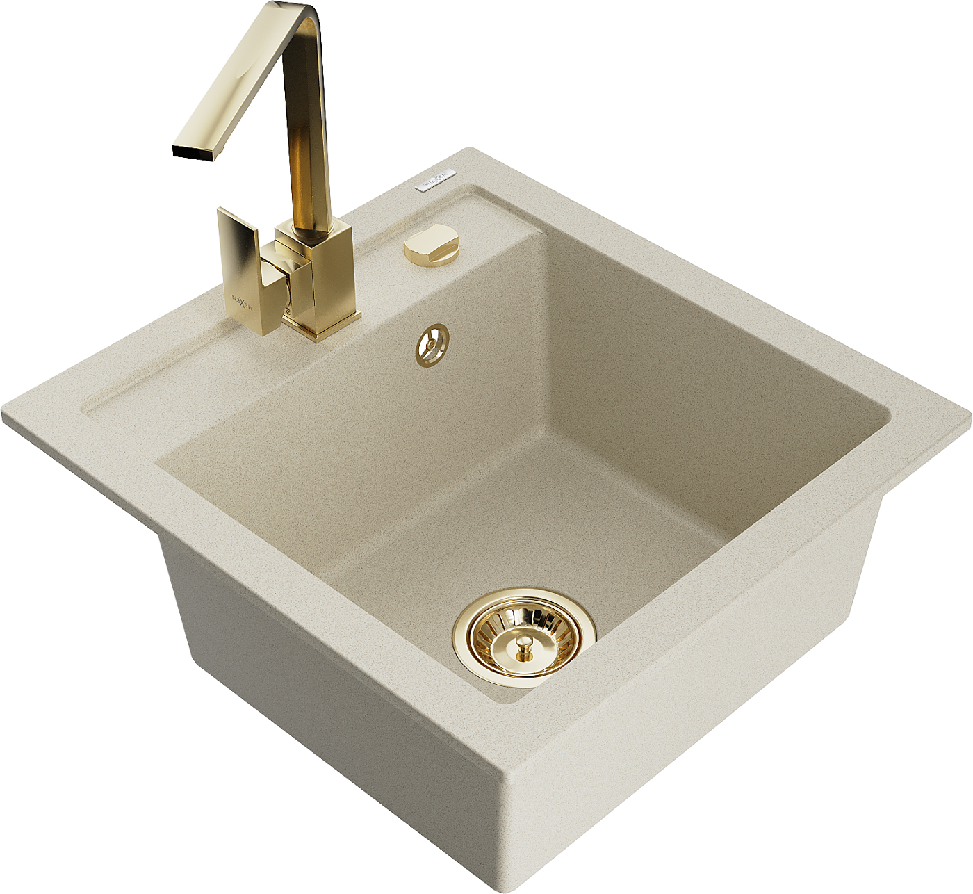 Mexen Vito zlewozmywak granitowy 1-komorowy z baterią kuchenną Rita, beżowy - 6503-69-670300-50