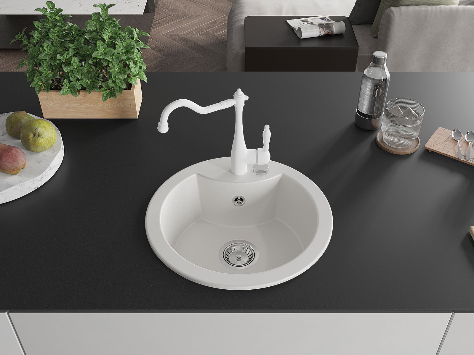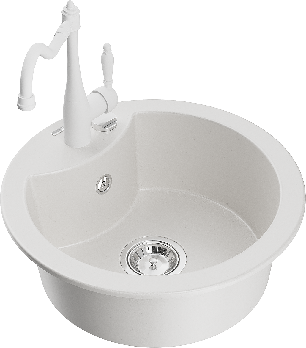 Mexen Diego zlewozmywak granitowy 1-komorowy z baterią kuchenną Carla, biały - 6512-20-670700-20
