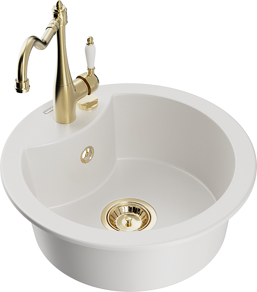 Mexen Diego zlewozmywak granitowy 1-komorowy z baterią kuchenną Carla, biały - 6512-20-670700-50