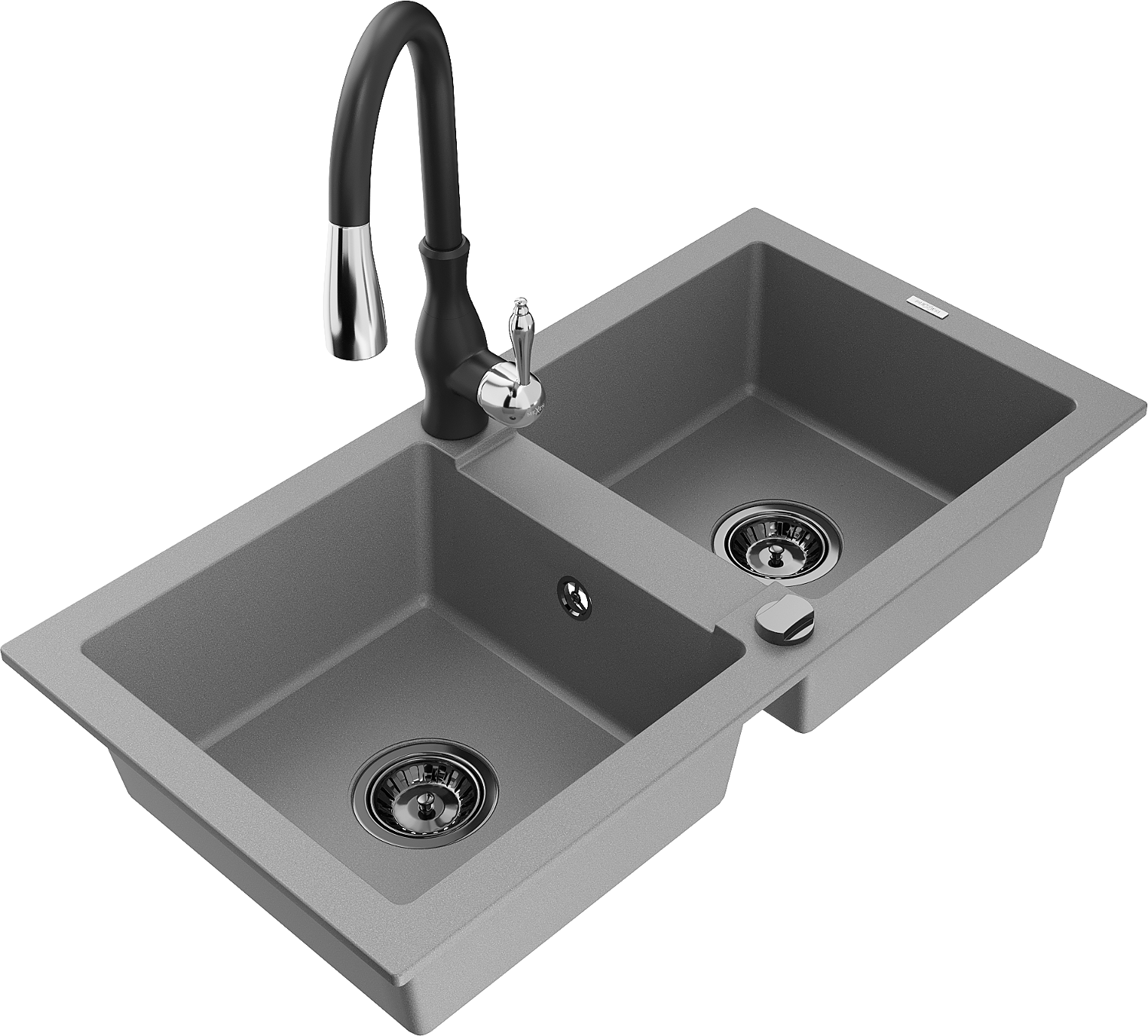 Mexen Mario zlewozmywak granitowy 2-komorowy z baterią kuchenną Savita, szary - 6504-71-672601-70-B