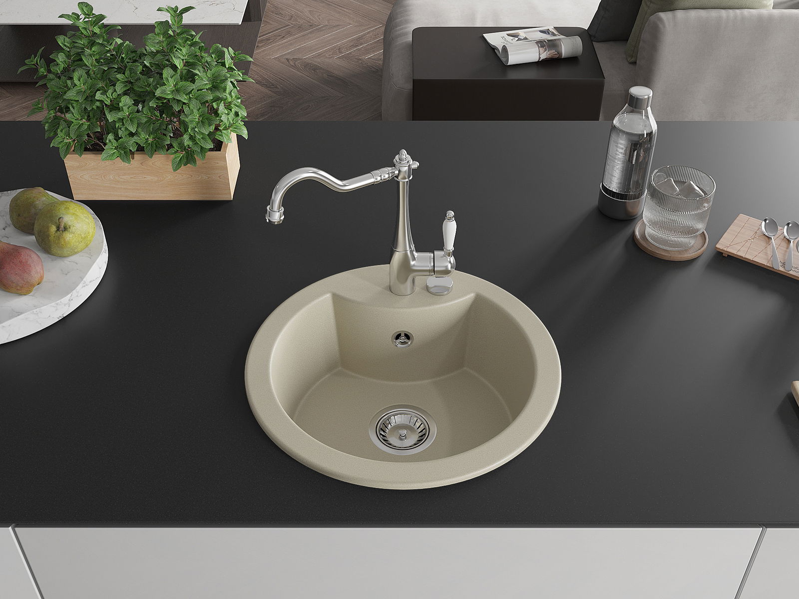 Zlewozmywak został wykonany z wysokiej jakości granitu. Stanowi eleganckie, a przede wszystkim praktyczne uzupełnienie każdej kuchni, niezależnie od jej stylu. Wysoka jakość oraz trwałość granitu zapewniają wieloletnie użytkowanie.