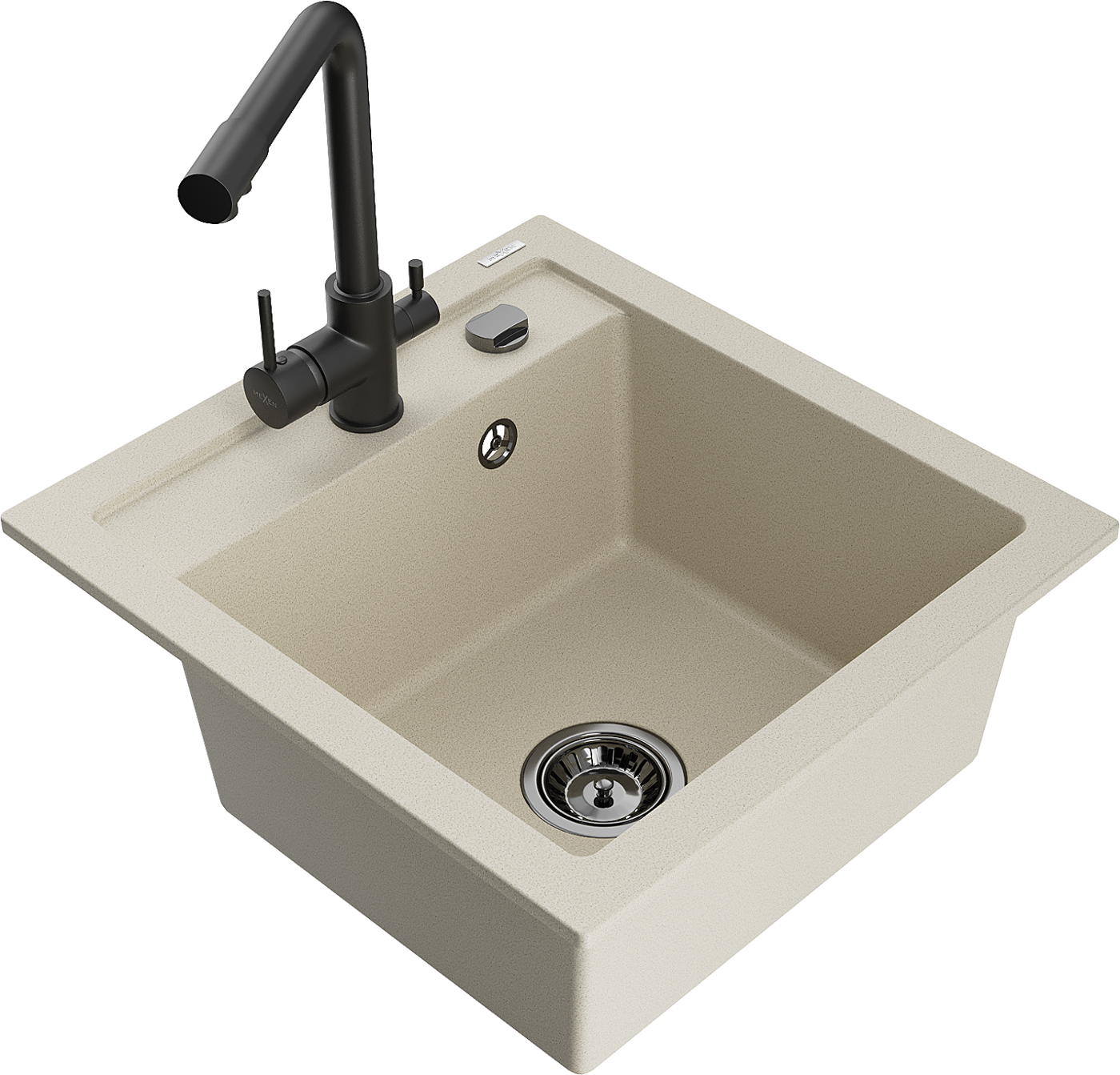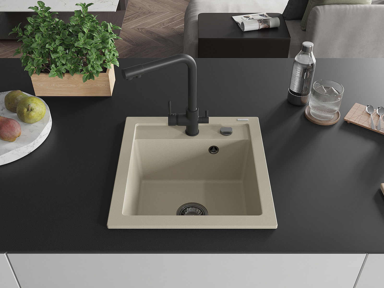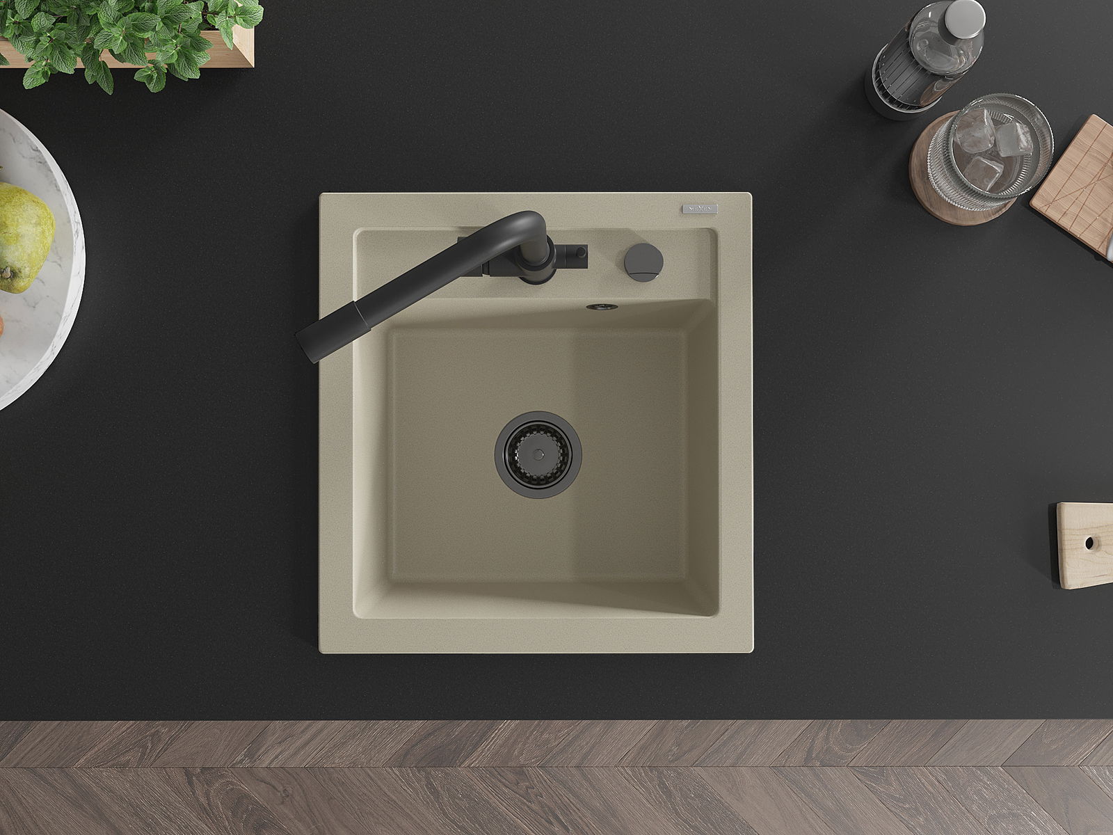 Mexen Vito zlewozmywak granitowy 1-komorowy z baterią kuchenną Duero, beżowy - 6503-69-671600-70