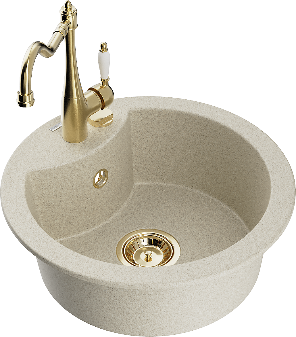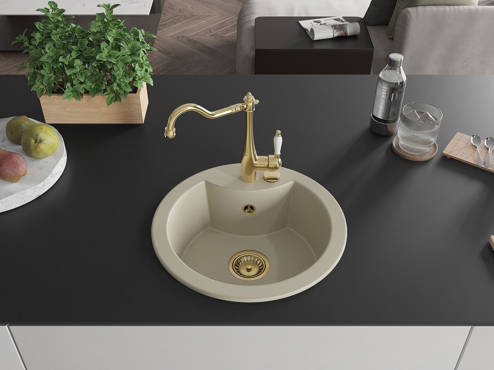 Mexen Diego zlewozmywak granitowy 1-komorowy z baterią kuchenną Carla, beżowy - 6512-69-670700-50