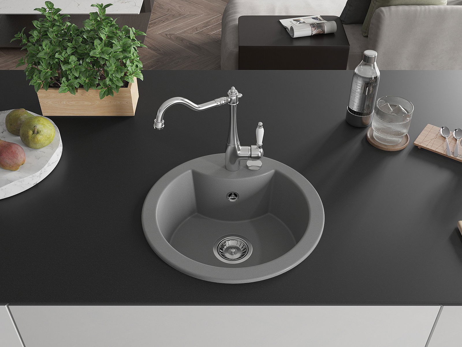 Zlewozmywak został wykonany z wysokiej jakości granitu. Stanowi eleganckie, a przede wszystkim praktyczne uzupełnienie każdej kuchni, niezależnie od jej stylu. Wysoka jakość oraz trwałość granitu zapewniają wieloletnie użytkowanie.