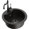 Mexen Diego zlewozmywak granitowy 1-komorowy z baterią kuchenną Carla, czarny/srebrny metalik - 6512-73-670700-70-B