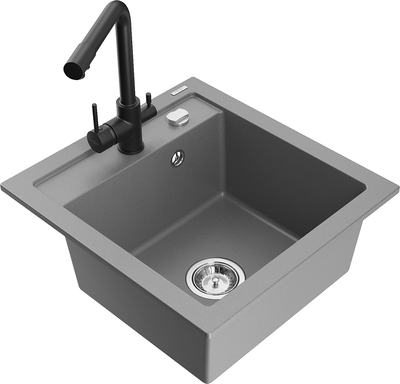 Mexen Vito zlewozmywak granitowy 1-komorowy z baterią kuchenną Duero, szary - 6503-71-671600-70