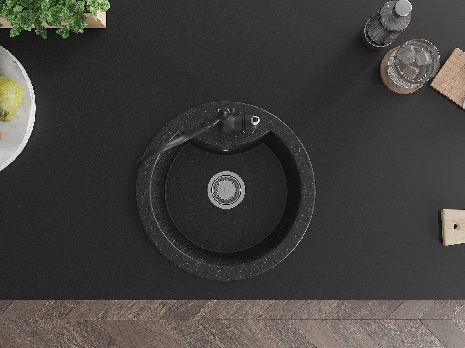 Mexen Diego zlewozmywak granitowy 1-komorowy z baterią kuchenną Carla, czarny/srebrny metalik - 6512-73-670700-70