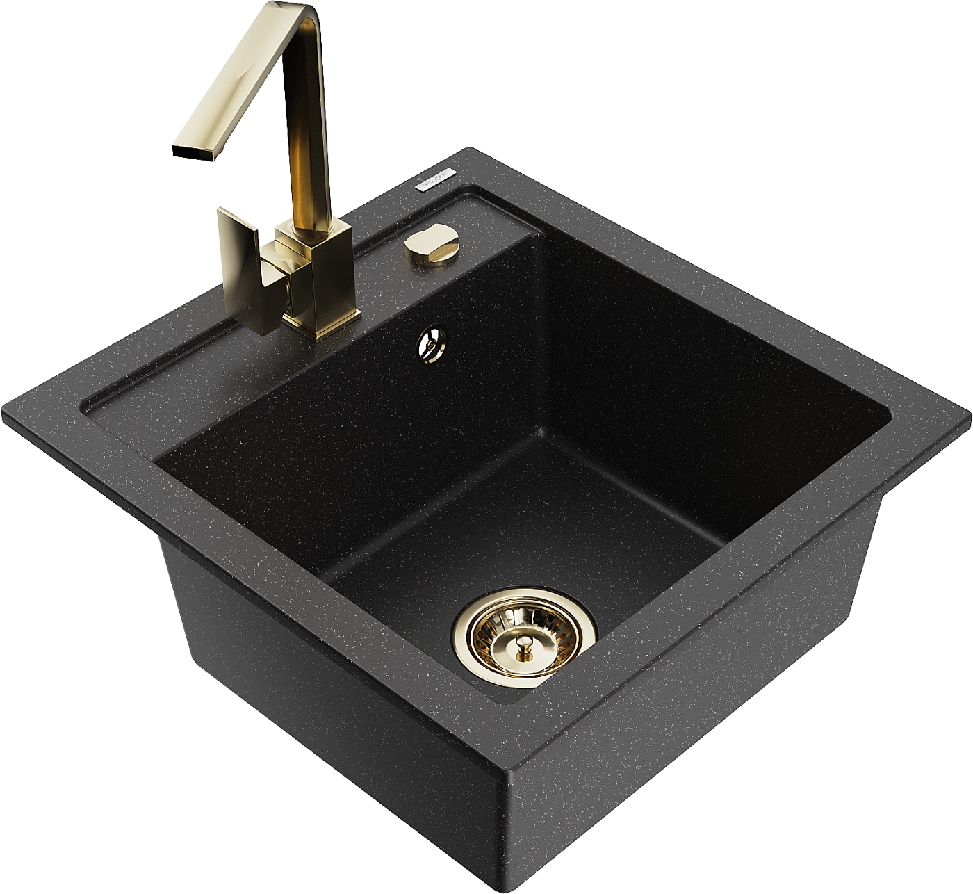 Mexen Vito zlewozmywak granitowy 1-komorowy z baterią kuchenną Rita, czarny/srebrny metalik - 6503-73-670300-50