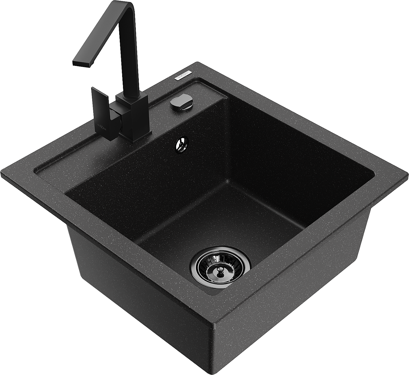 Mexen Vito zlewozmywak granitowy 1-komorowy z baterią kuchenną Rita, czarny/srebrny metalik - 6503-73-670300-70-B