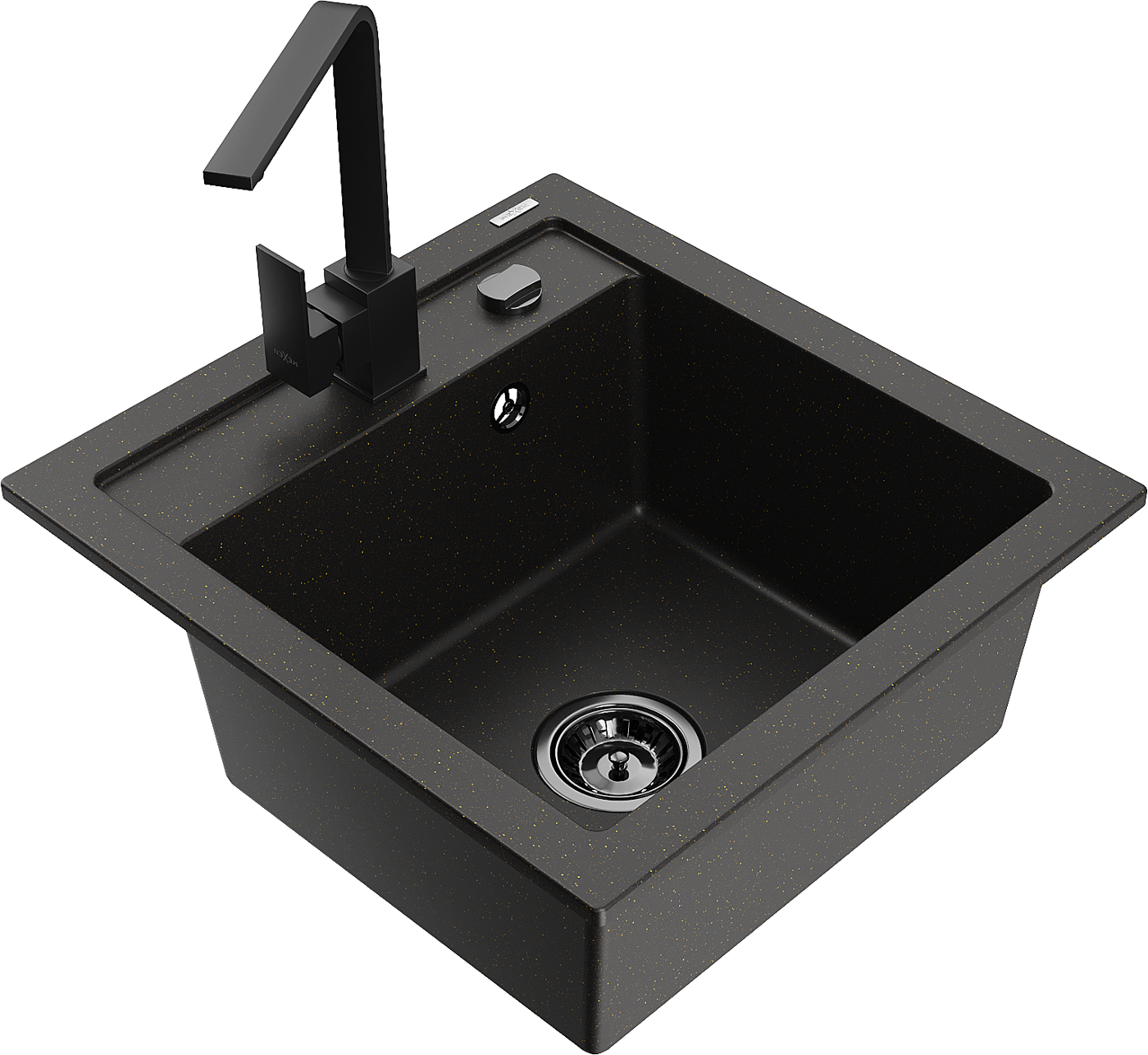 Mexen Vito zlewozmywak granitowy 1-komorowy z baterią kuchenną Rita, czarny/złoty metalik - 6503-75-670300-70-B