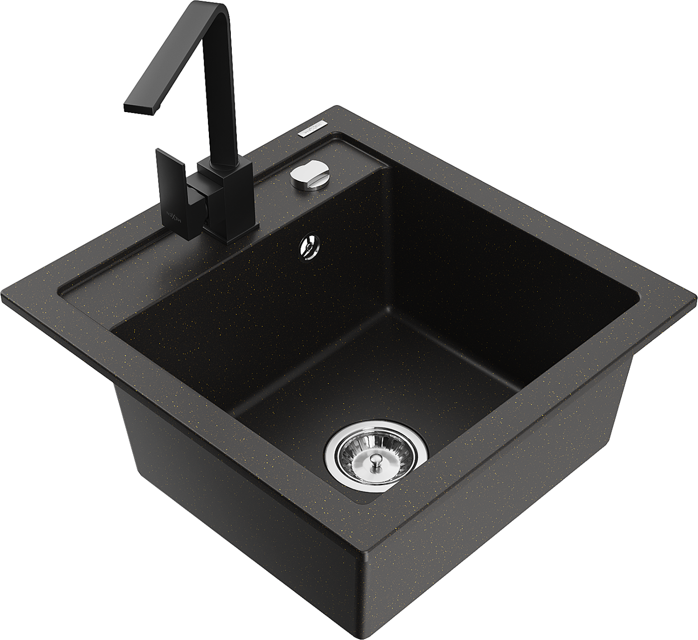 Mexen Vito zlewozmywak granitowy 1-komorowy z baterią kuchenną Rita, czarny/złoty metalik - 6503-75-670300-70