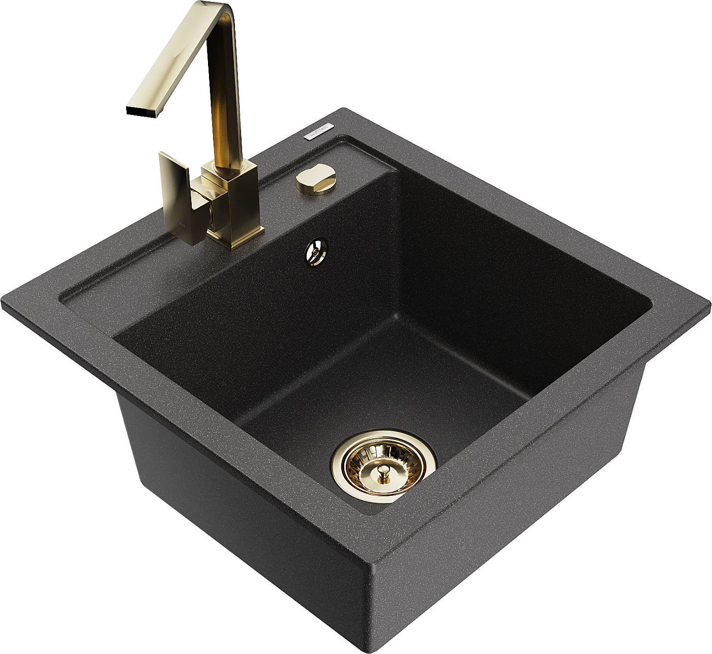 Mexen Vito zlewozmywak granitowy 1-komorowy z baterią kuchenną Rita, czarny nakrapiany - 6503-76-670300-50