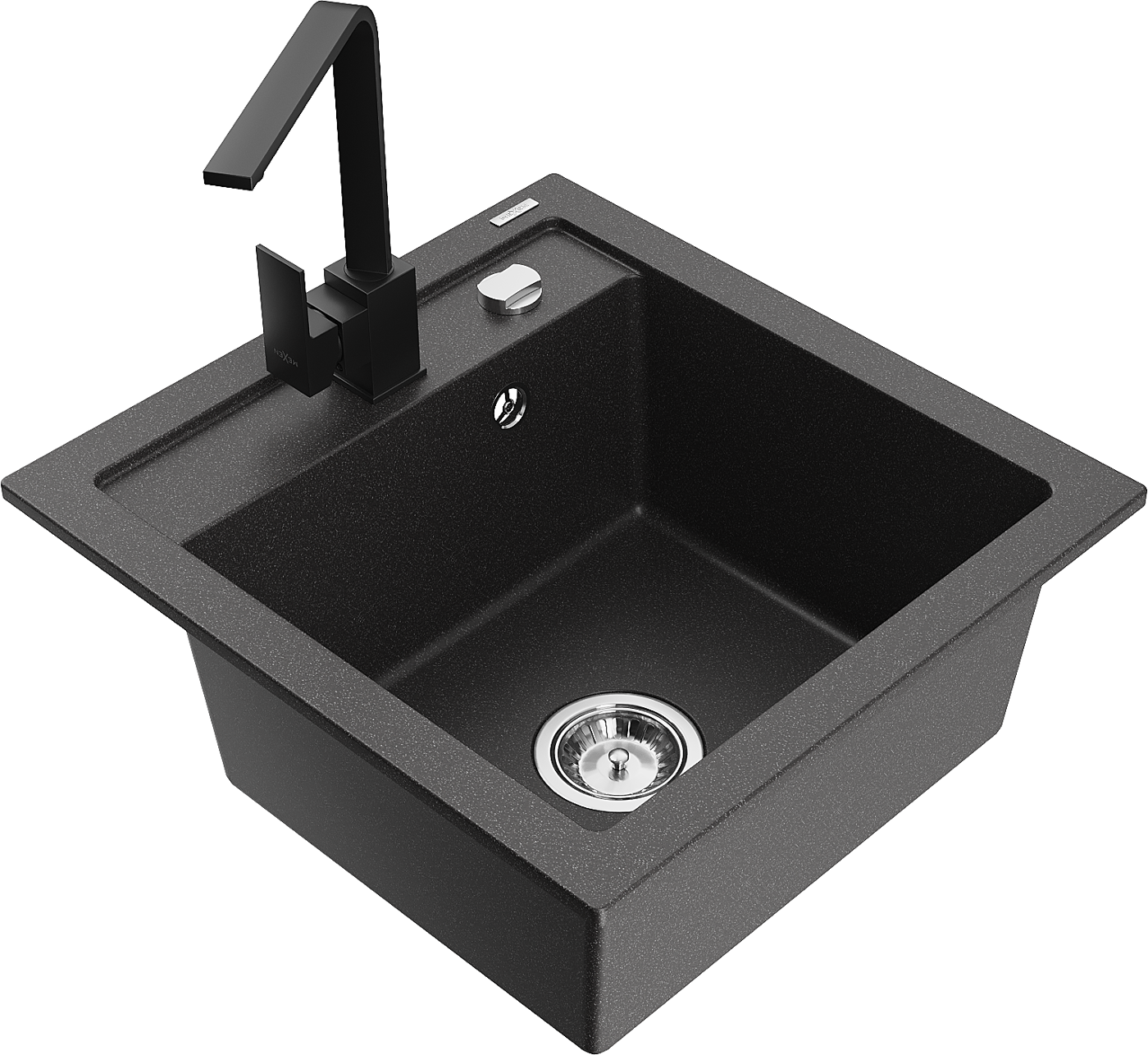 Mexen Vito zlewozmywak granitowy 1-komorowy z baterią kuchenną Rita, czarny nakrapiany - 6503-76-670300-70