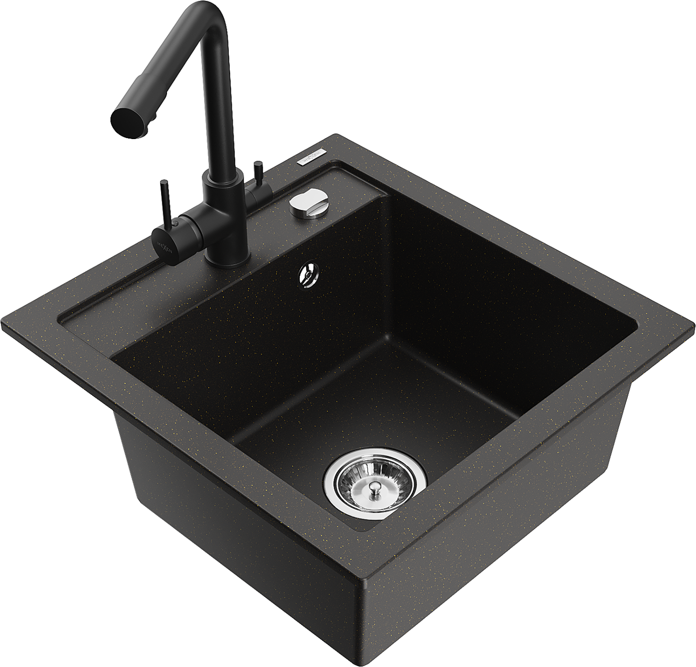 Mexen Vito zlewozmywak granitowy 1-komorowy z baterią kuchenną Duero, czarny/złoty metalik - 6503-75-671600-70