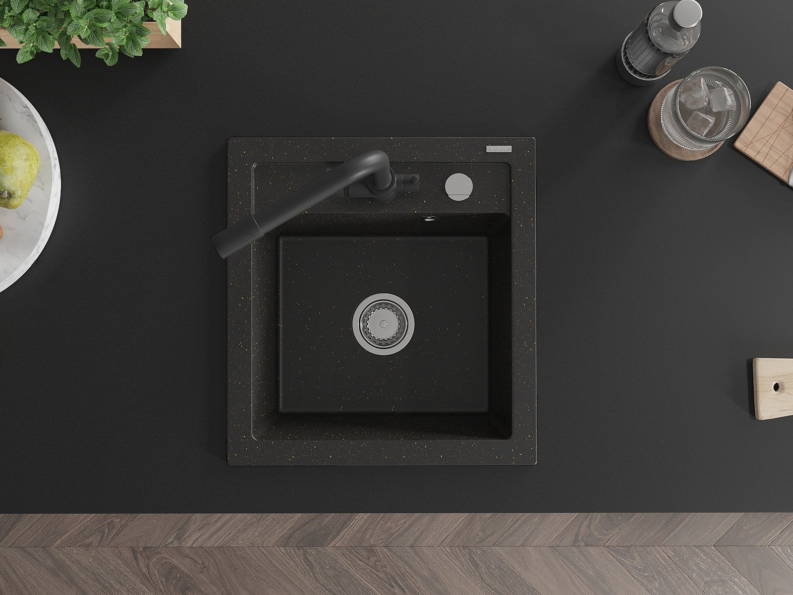 Zlew posiada podfrezowany otwór o średnicy 35 mm do samodzielnego wybicia. Można go wykorzystać m.in. do montażu dozownika na płyn, który wyeliminuje obecność plastikowych butelek w kuchni i nada jej eleganckiego wykończenia.