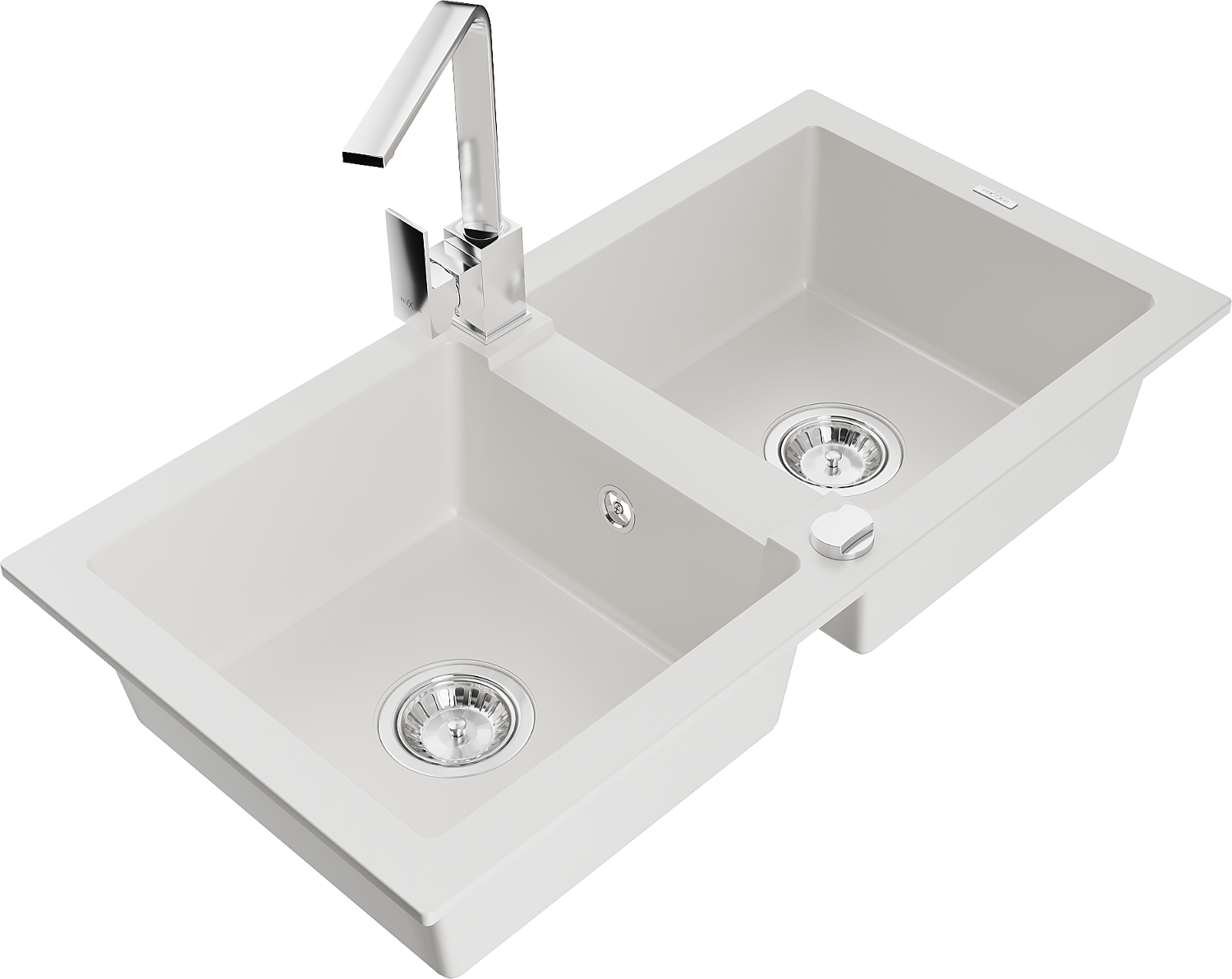 Mexen Mario zlewozmywak granitowy 2-komorowy z baterią kuchenną Rita, biały - 6504-20-670300-00