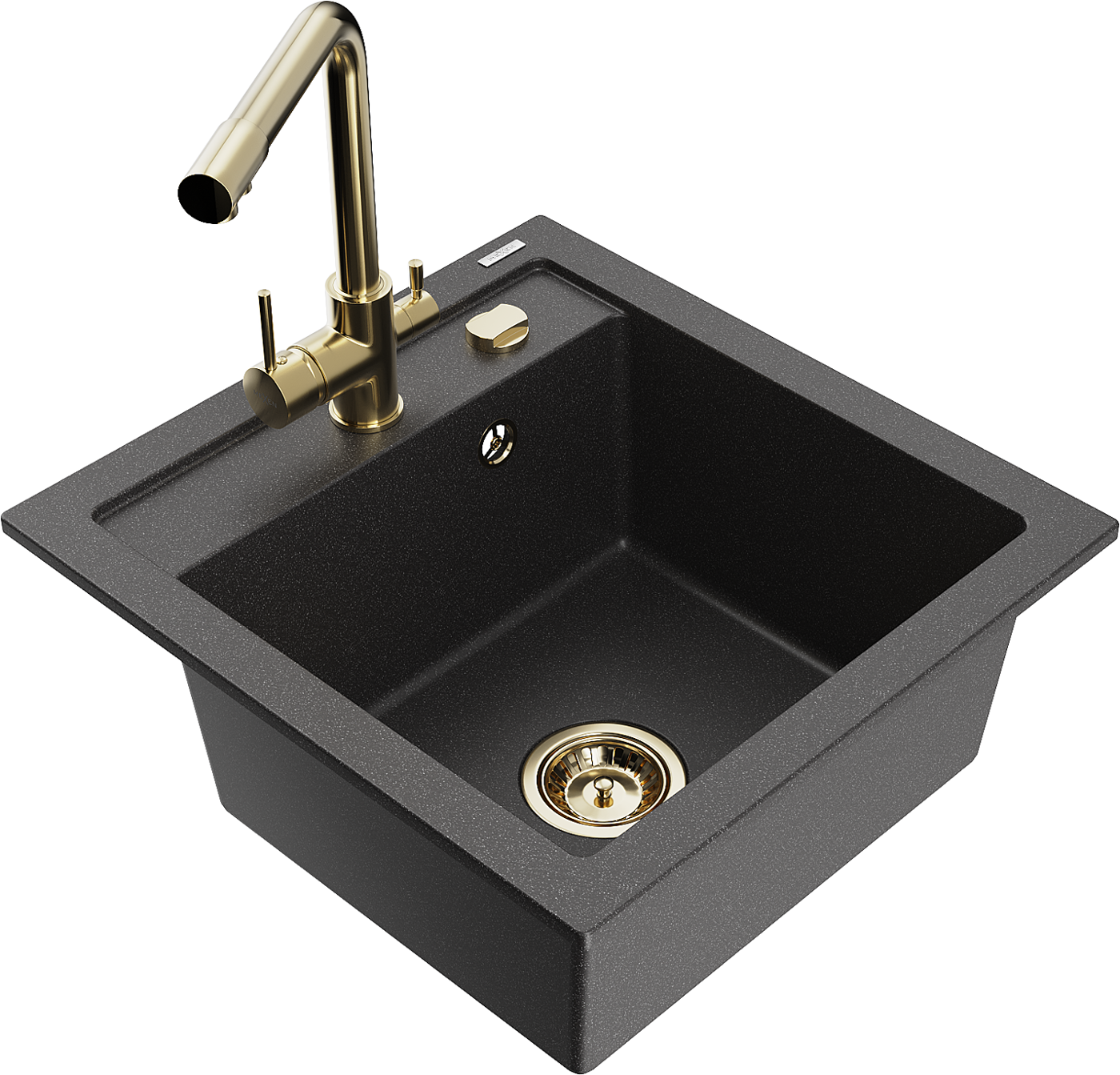 Mexen Vito zlewozmywak granitowy 1-komorowy z baterią kuchenną Duero, czarny nakrapiany - 6503-76-671600-50