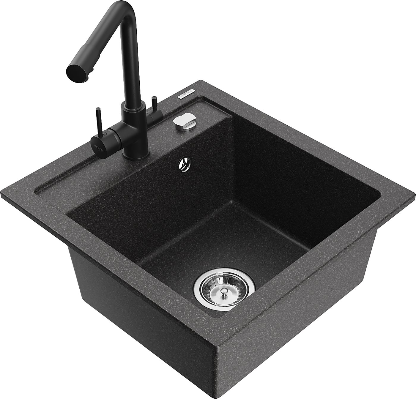 Mexen Vito zlewozmywak granitowy 1-komorowy z baterią kuchenną Duero, czarny nakrapiany - 6503-76-671600-70