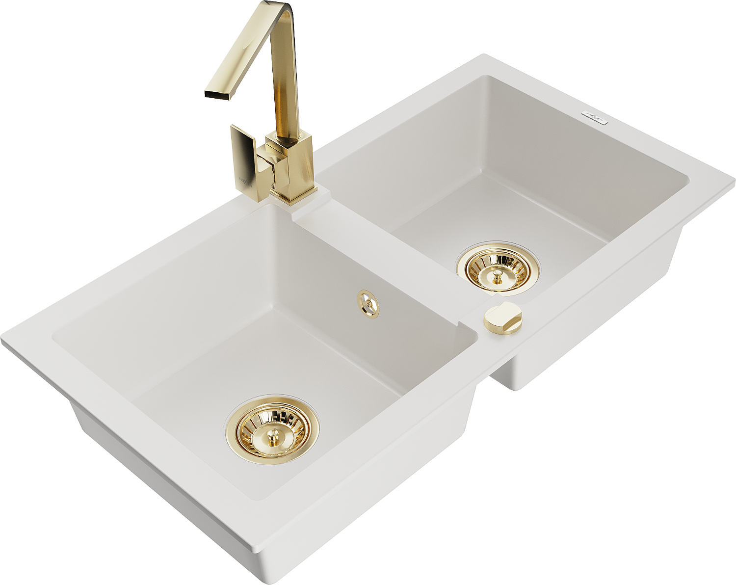 Mexen Mario zlewozmywak granitowy 2-komorowy z baterią kuchenną Rita, biały - 6504-20-670300-50