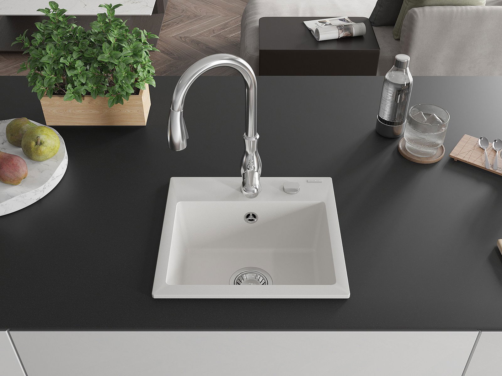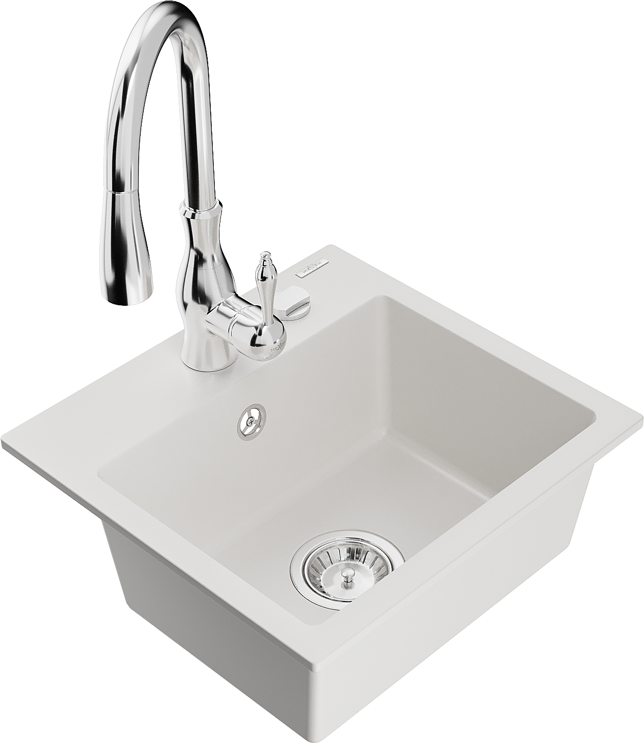 Mexen Milo zlewozmywak granitowy 1-komorowy z baterią kuchenną Savita, biały - 6505-20-672601-00