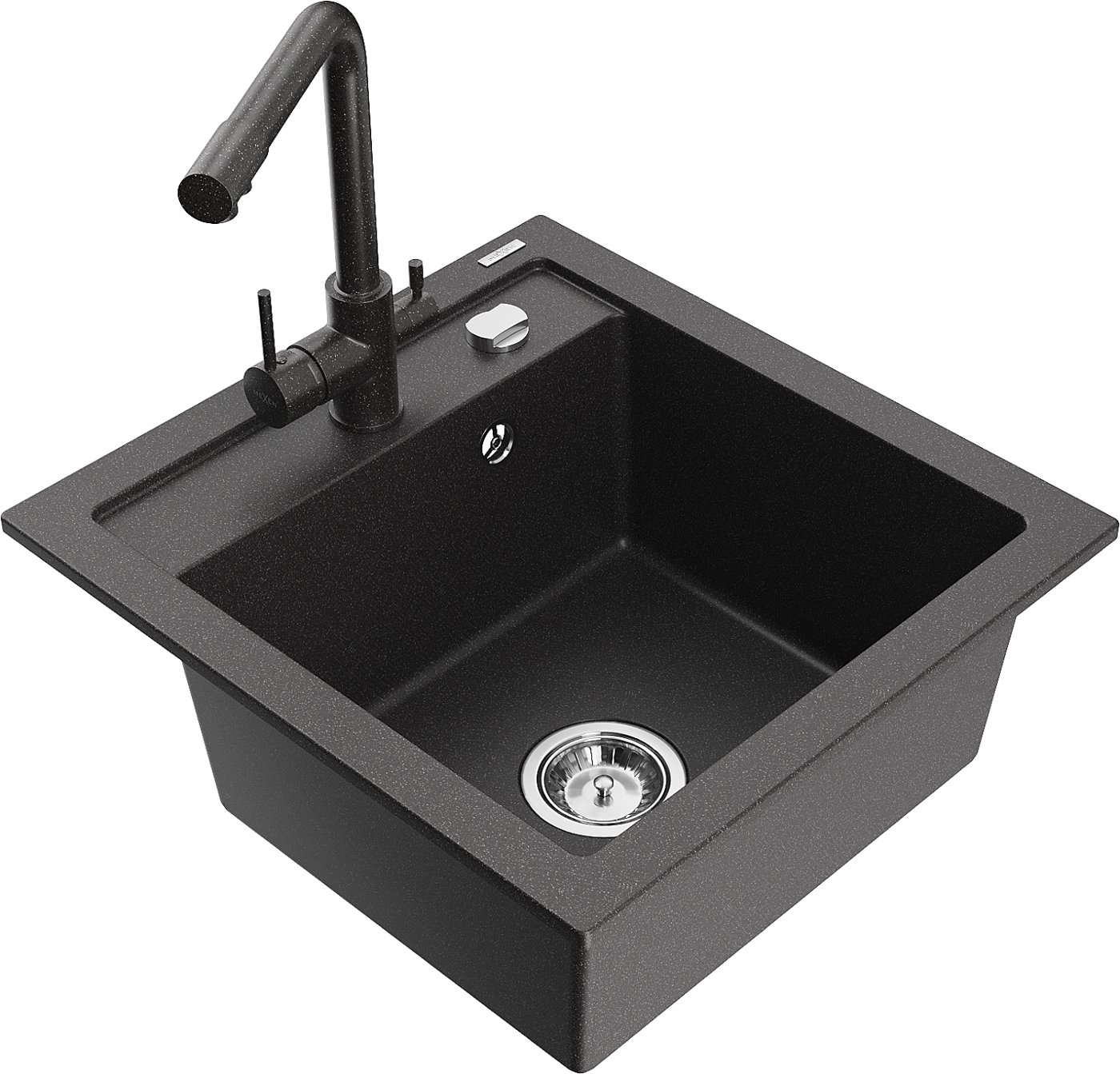 Mexen Vito zlewozmywak granitowy 1-komorowy z baterią kuchenną Duero, czarny nakrapiany - 6503-76-671600-76