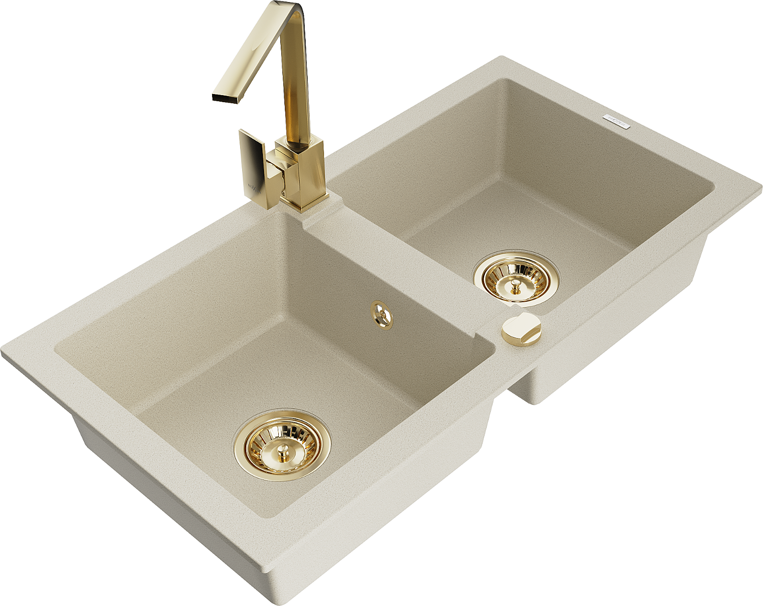 Mexen Mario zlewozmywak granitowy 2-komorowy z baterią kuchenną Rita, beżowy - 6504-69-670300-50