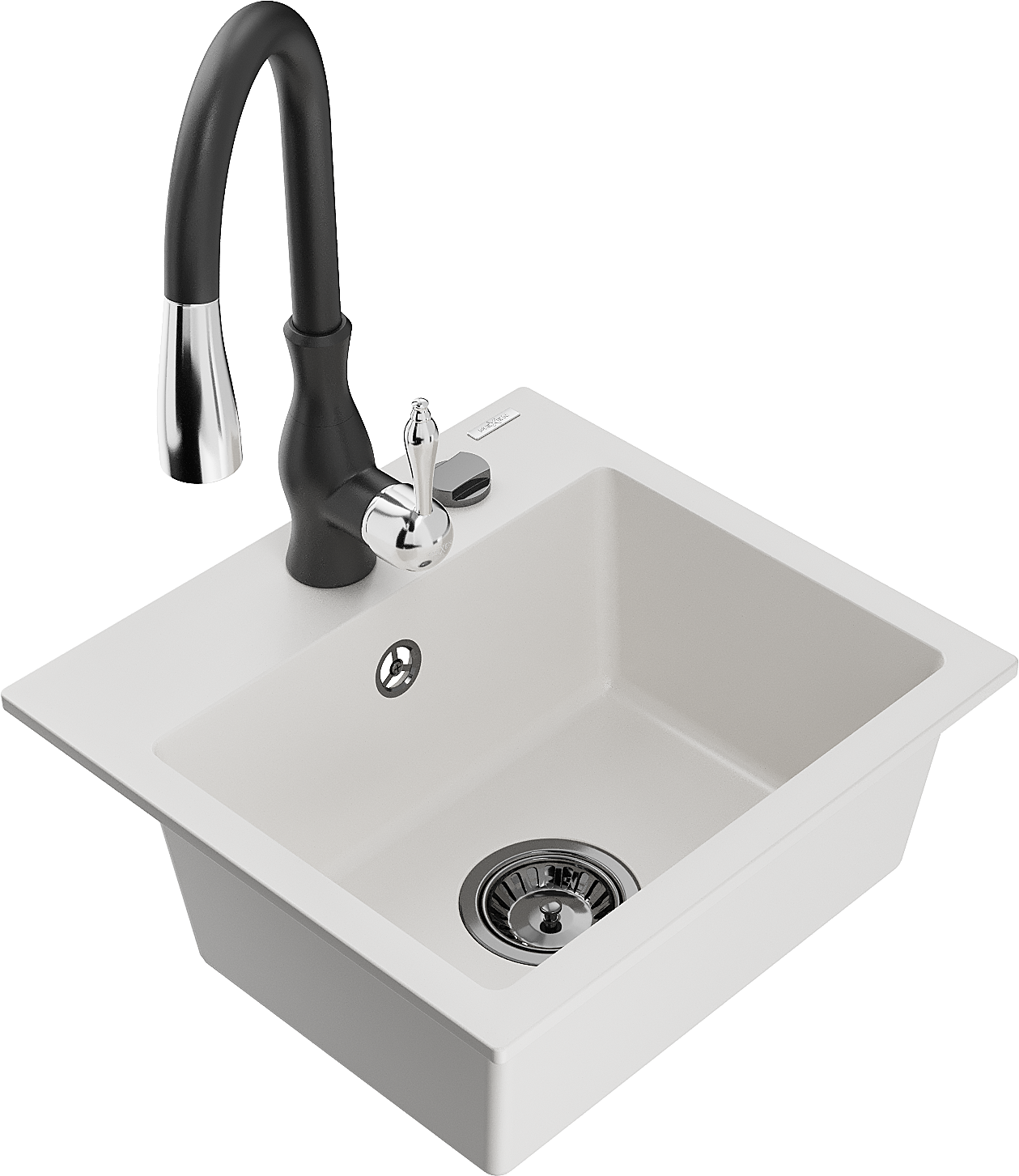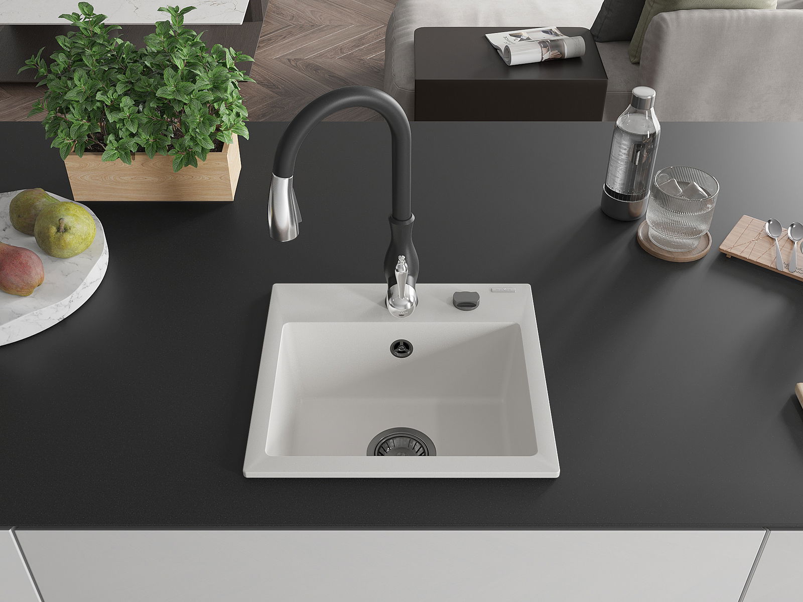 Mexen Milo zlewozmywak granitowy 1-komorowy z baterią kuchenną Savita, biały - 6505-20-672601-70