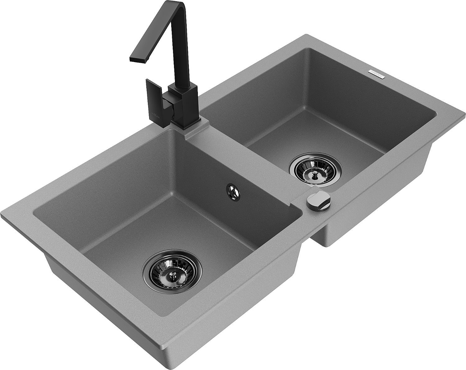 Mexen Mario zlewozmywak granitowy 2-komorowy z baterią kuchenną Rita, szary - 6504-71-670300-70-B