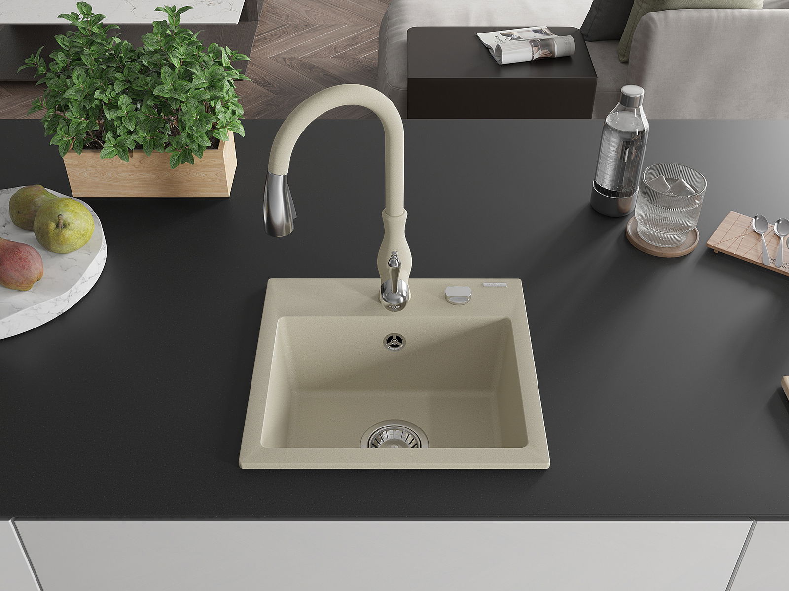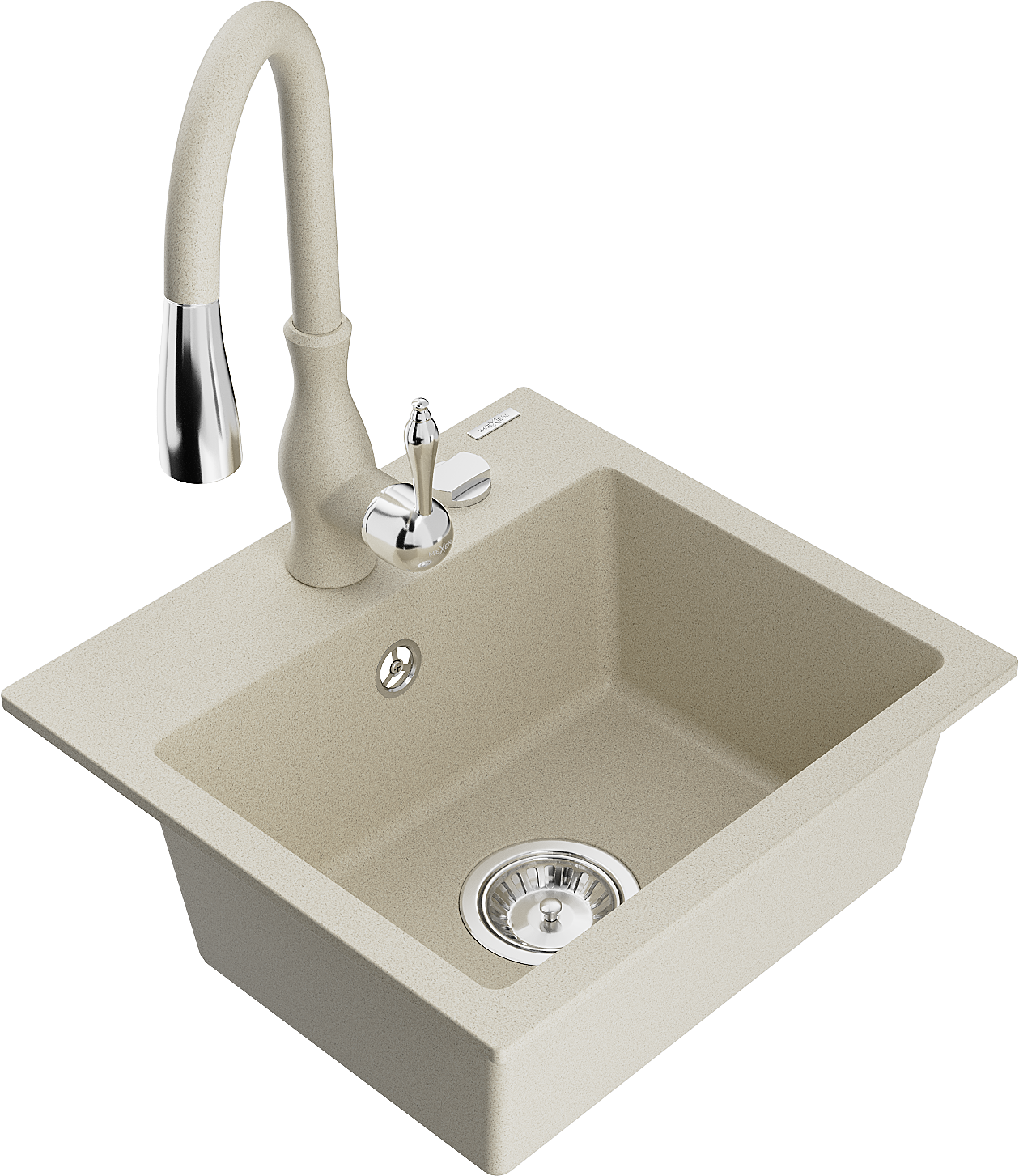Mexen Milo zlewozmywak granitowy 1-komorowy z baterią kuchenną Savita, beżowy - 6505-69-672601-69
