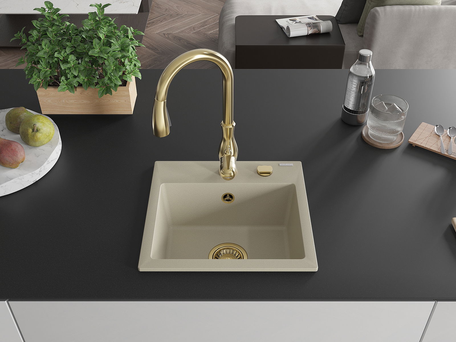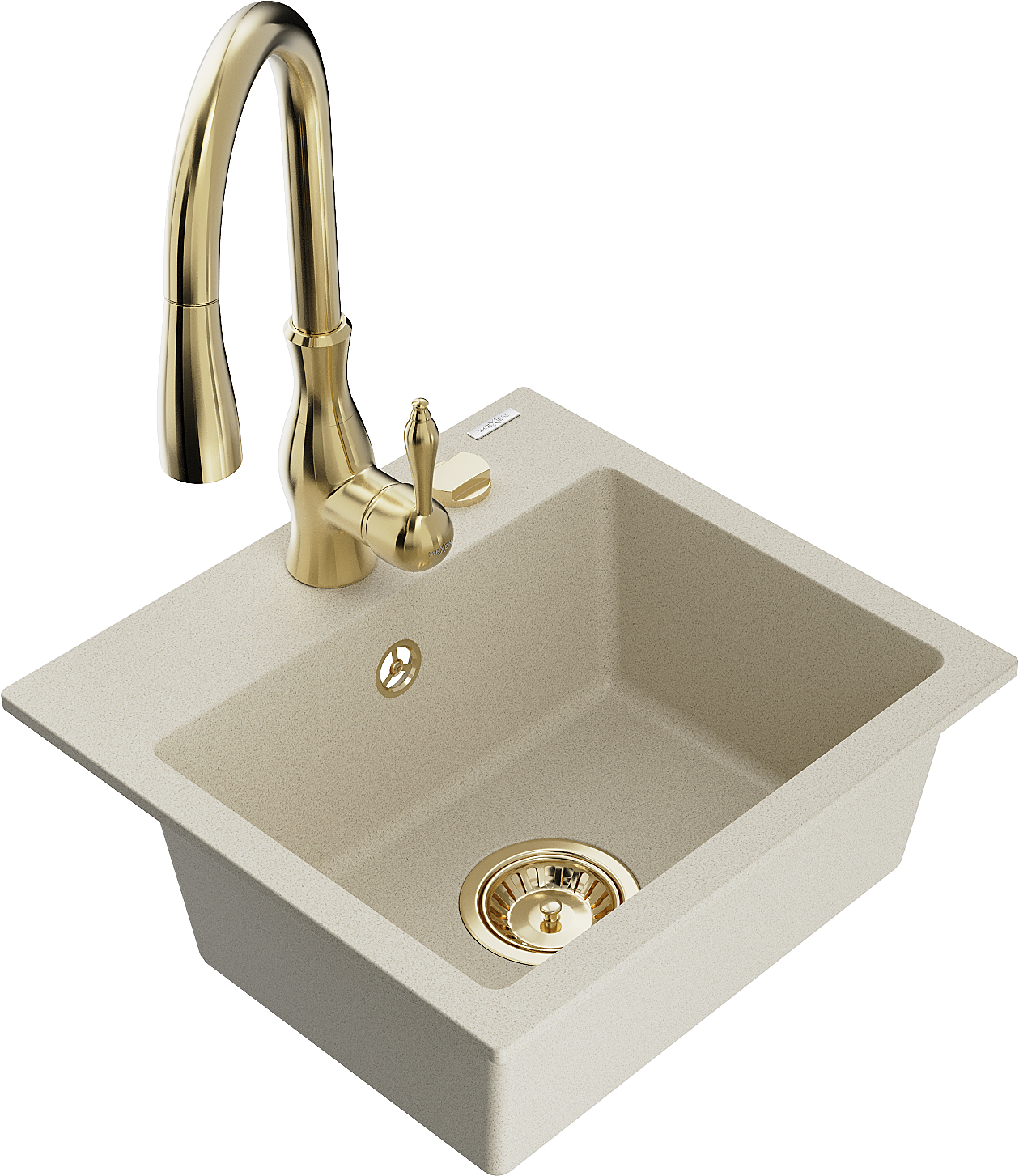Mexen Milo zlewozmywak granitowy 1-komorowy z baterią kuchenną Savita, beżowy - 6505-69-672601-50