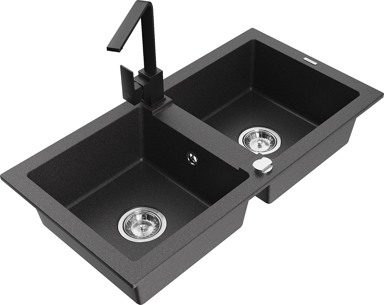 Mexen Mario zlewozmywak granitowy 2-komorowy z baterią kuchenną Rita, czarny nakrapiany - 6504-76-670300-70