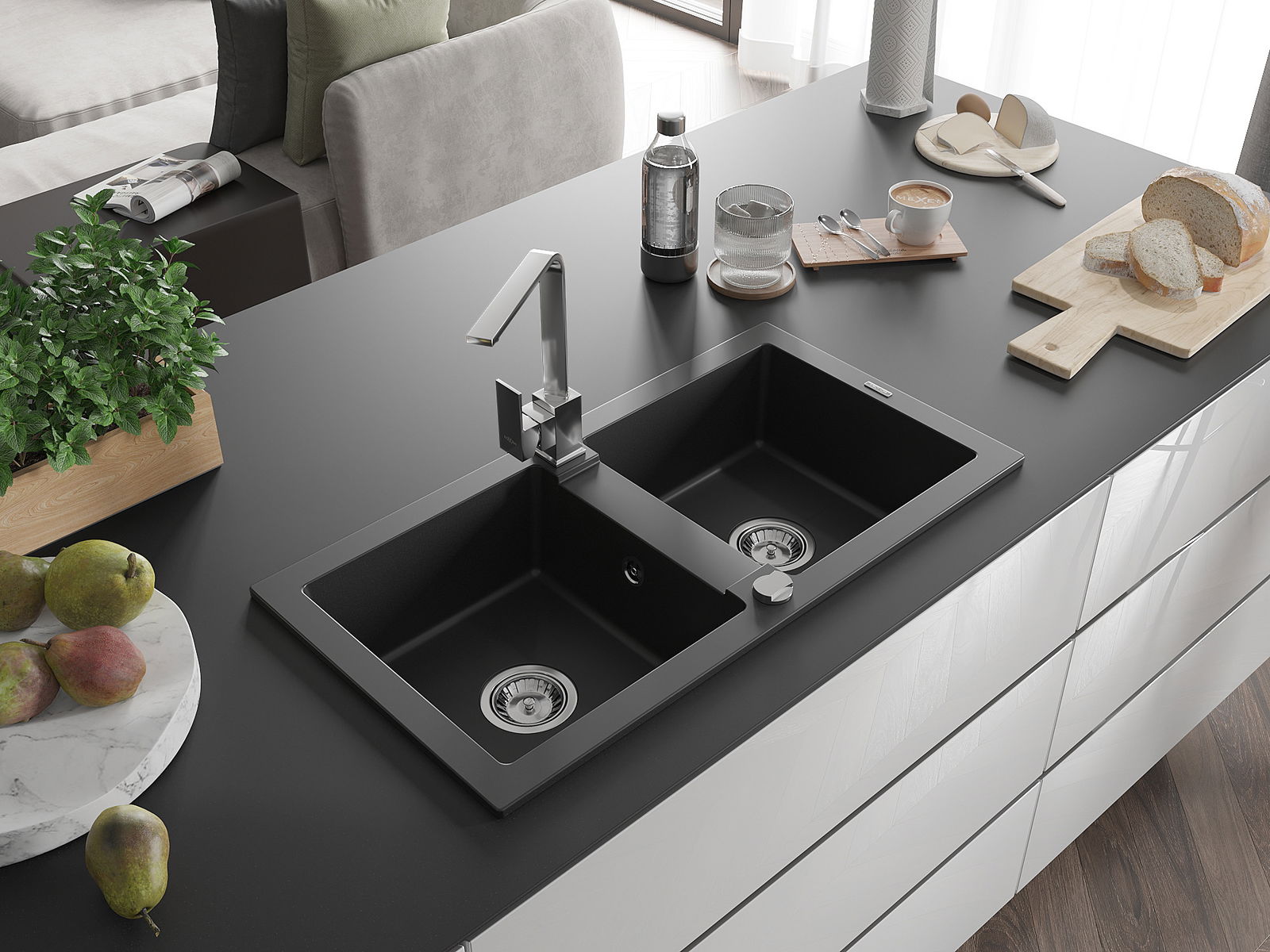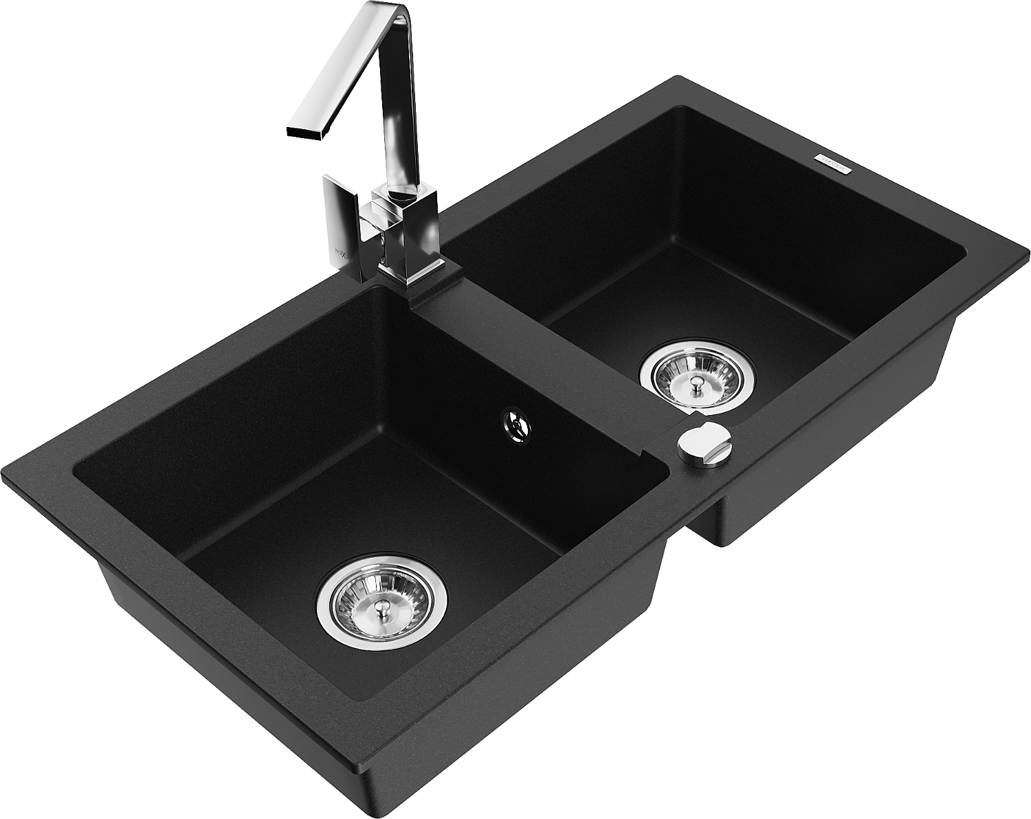 Mexen Mario zlewozmywak granitowy 2-komorowy z baterią kuchenną Rita, czarny - 6504-77-670300-00