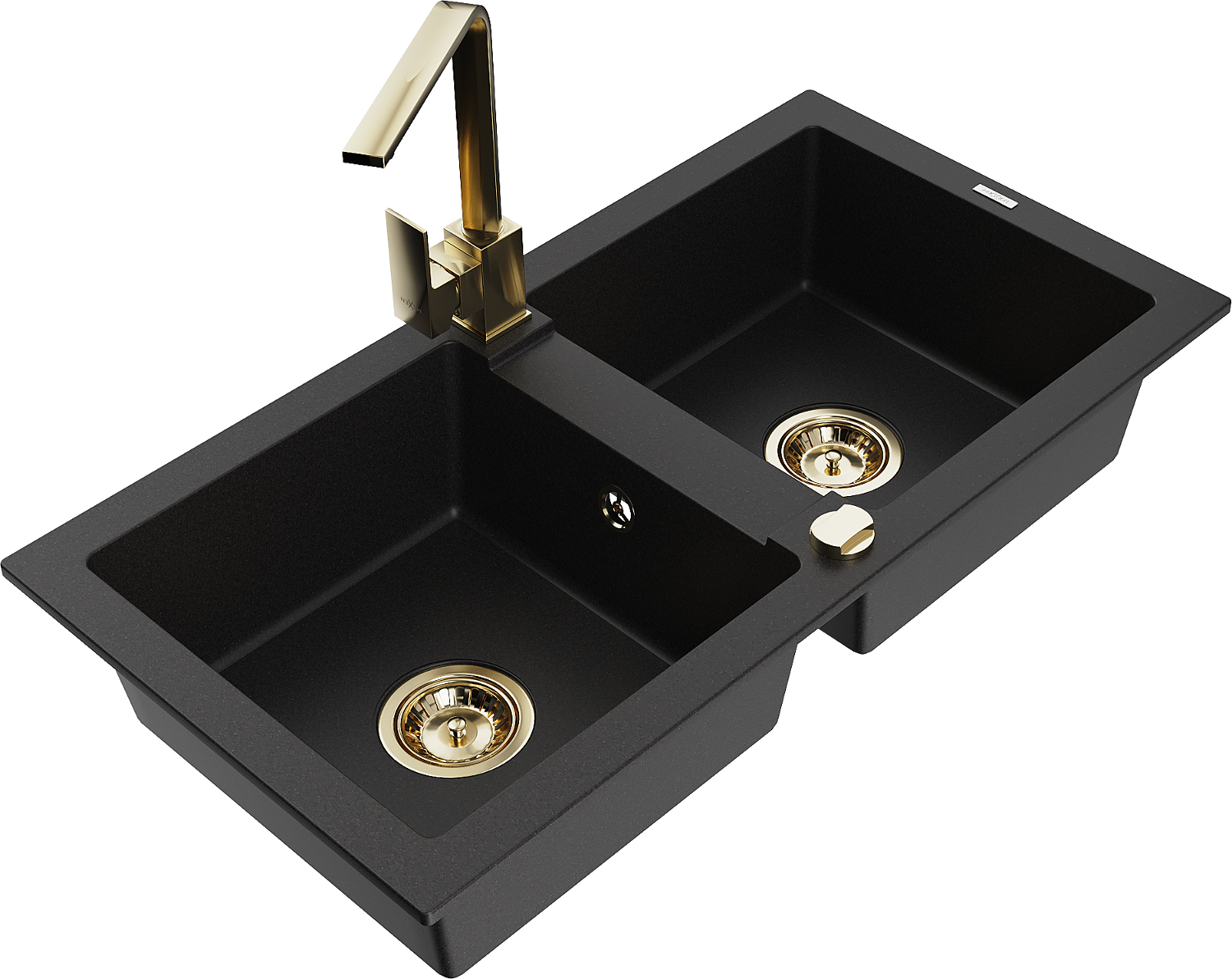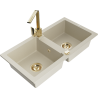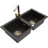 Mexen Mario zlewozmywak granitowy 2-komorowy z baterią kuchenną Rita, czarny - 6504-77-670300-50