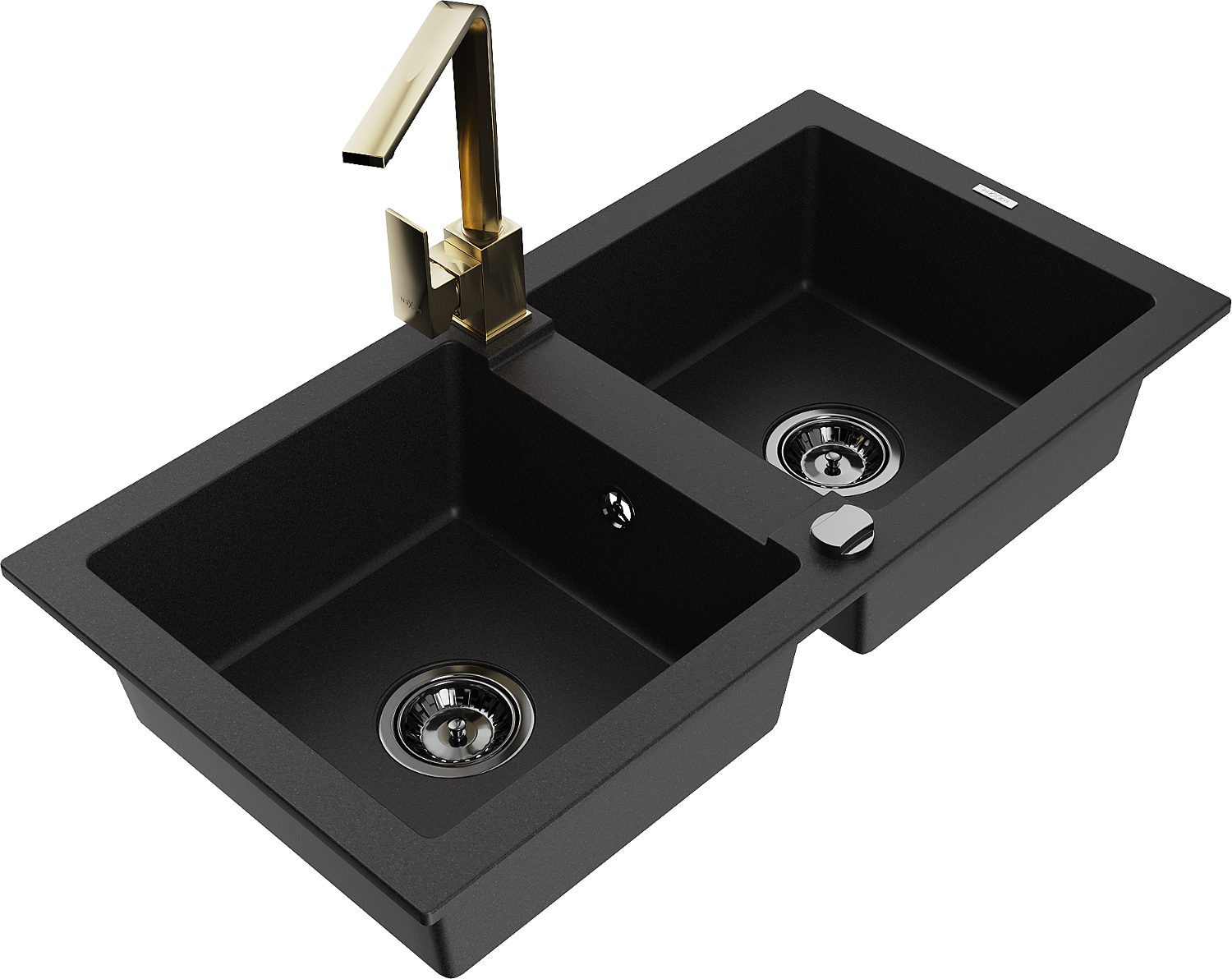 Mexen Mario zlewozmywak granitowy 2-komorowy z baterią kuchenną Rita, czarny - 6504-77-670300-50-B