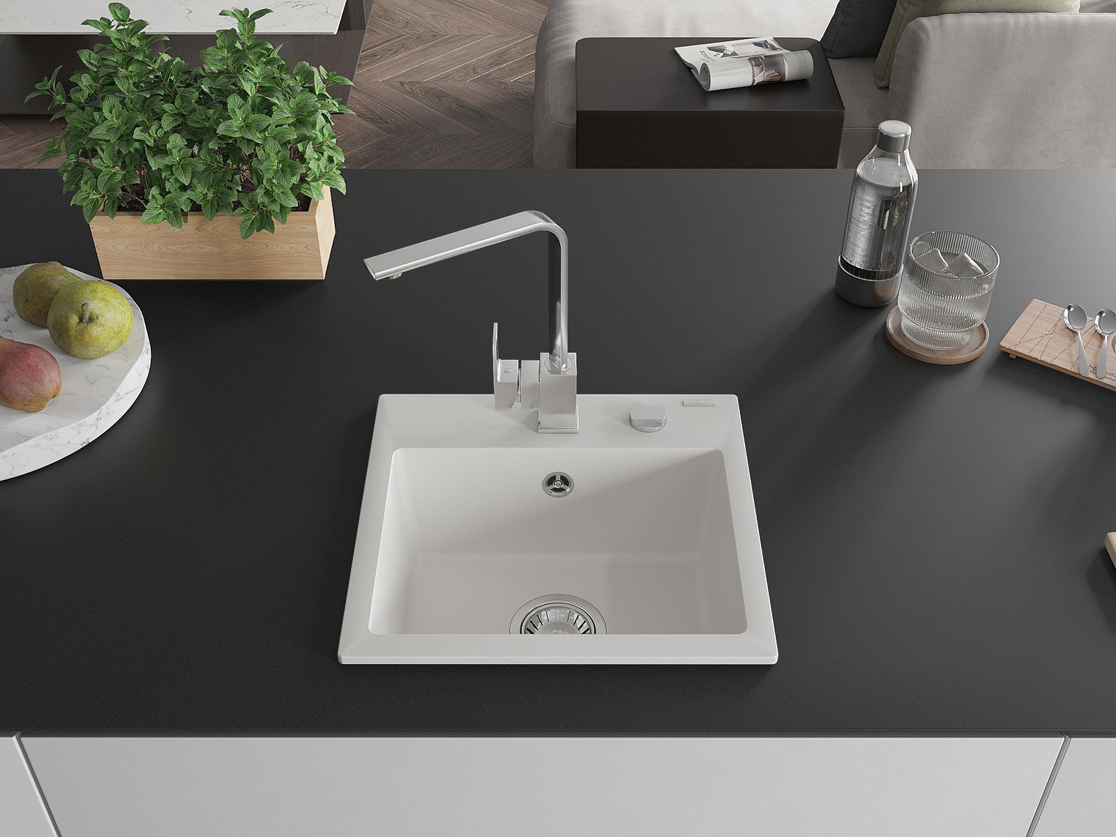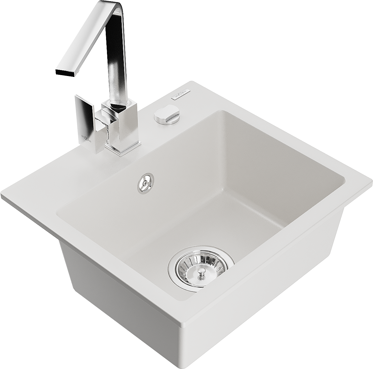 Mexen Milo zlewozmywak granitowy 1-komorowy z baterią kuchenną Rita, biały - 6505-20-670300-00