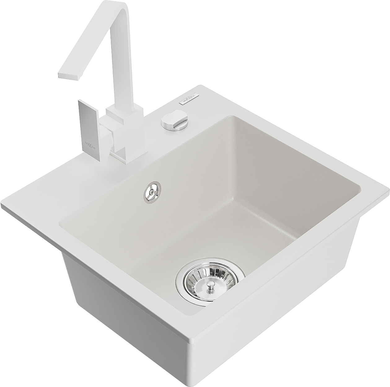 Mexen Milo zlewozmywak granitowy 1-komorowy z baterią kuchenną Rita, biały - 6505-20-670300-20