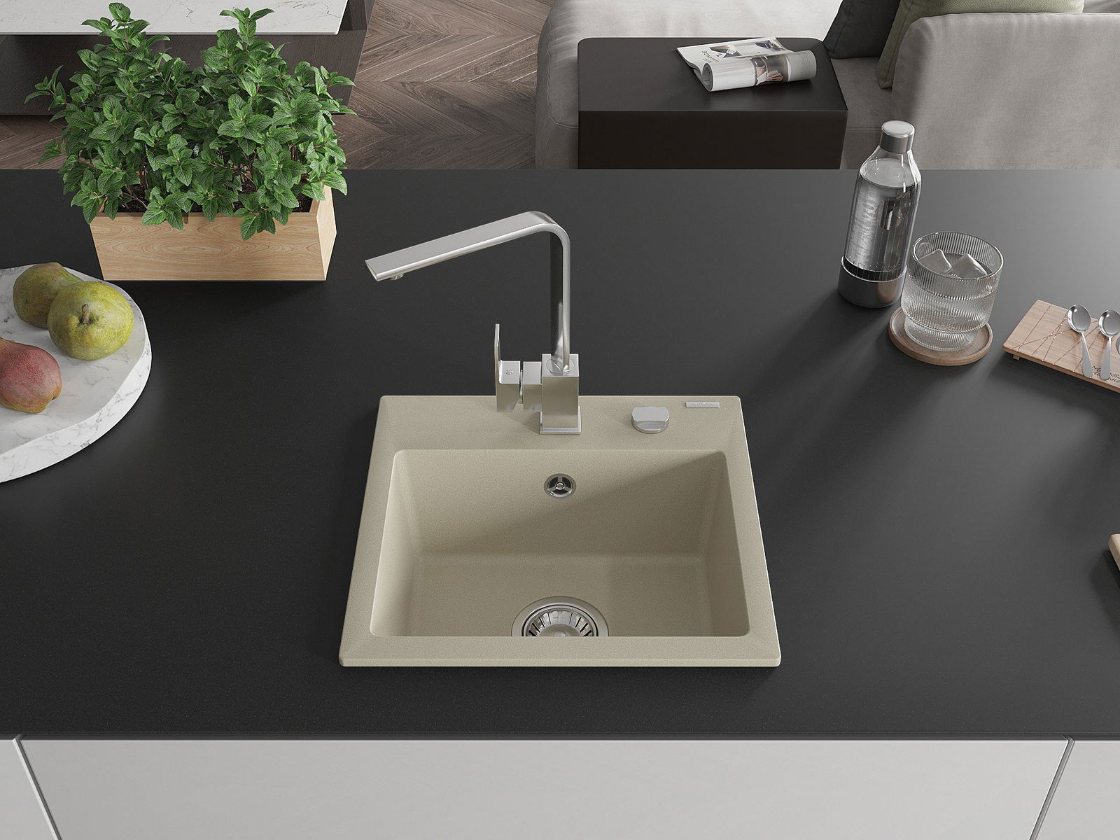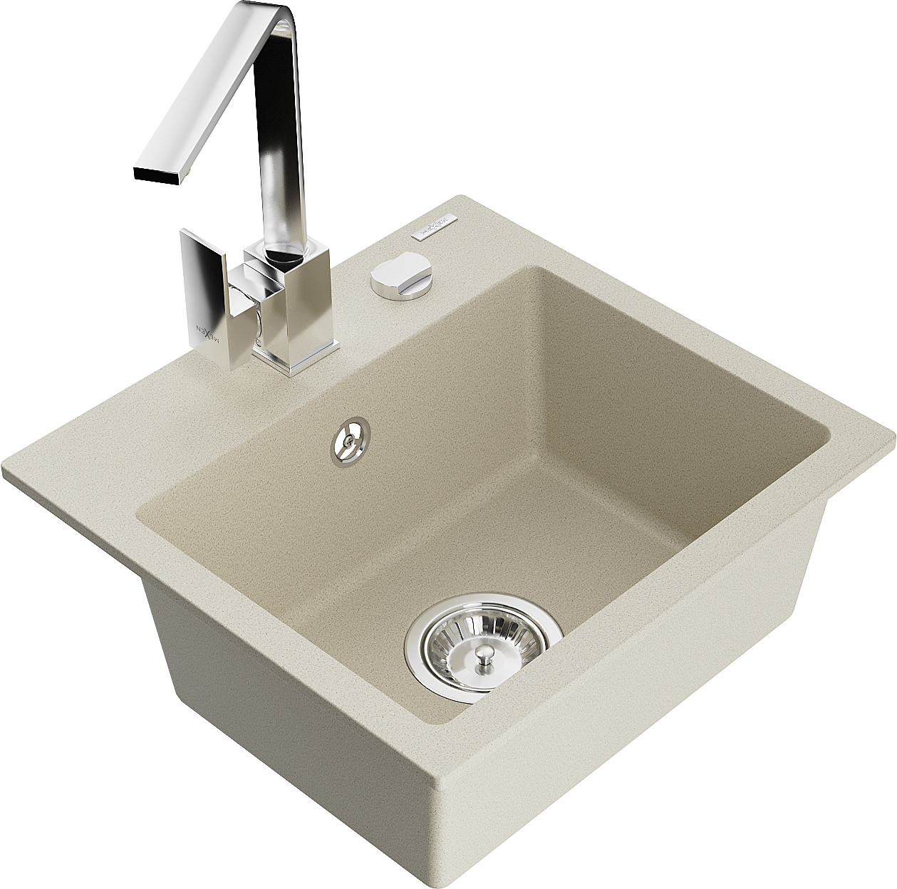 Mexen Milo zlewozmywak granitowy 1-komorowy z baterią kuchenną Rita, beżowy - 6505-69-670300-00