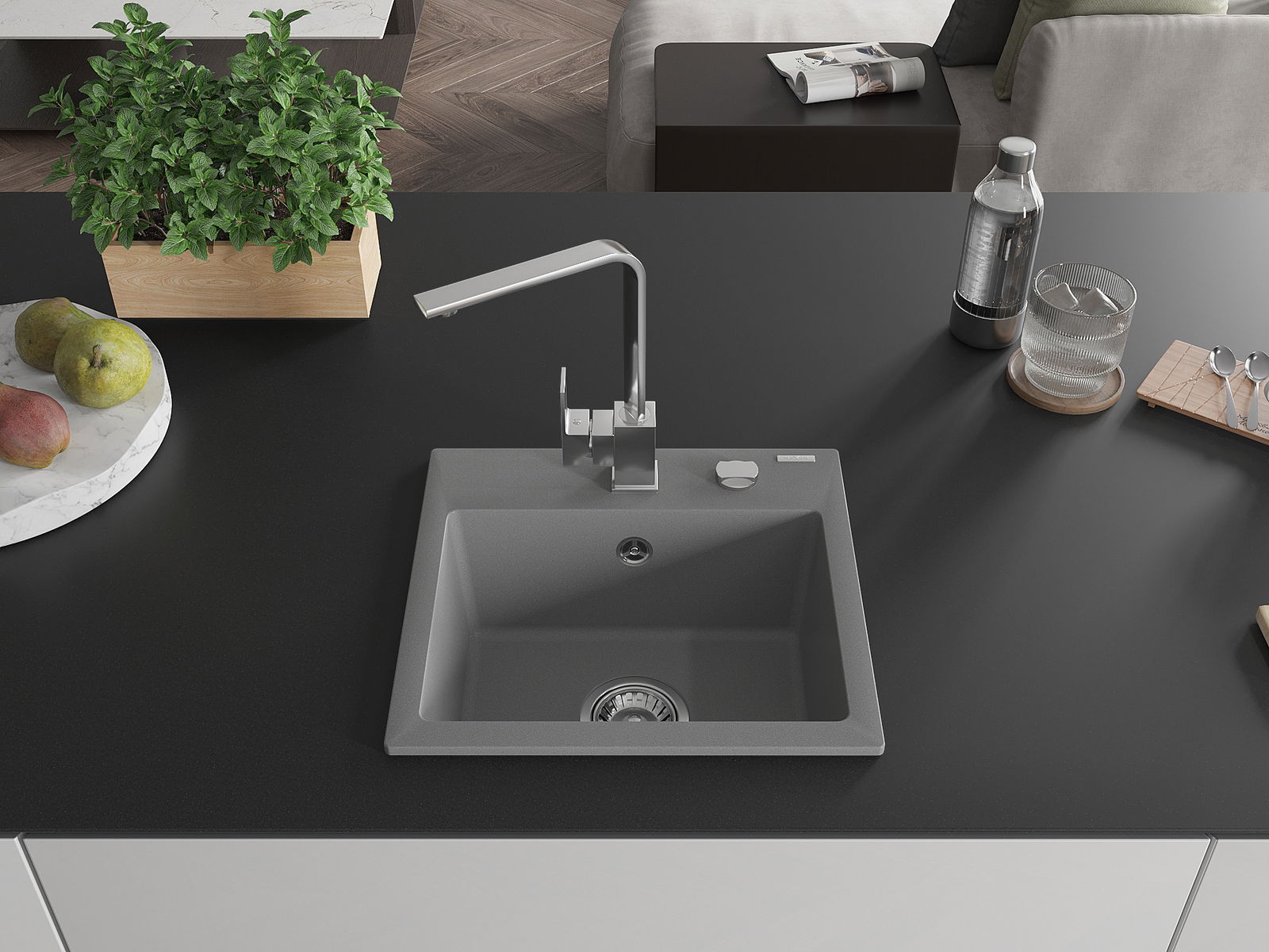 Mexen Milo zlewozmywak granitowy 1-komorowy z baterią kuchenną Rita, szary - 6505-71-670300-00