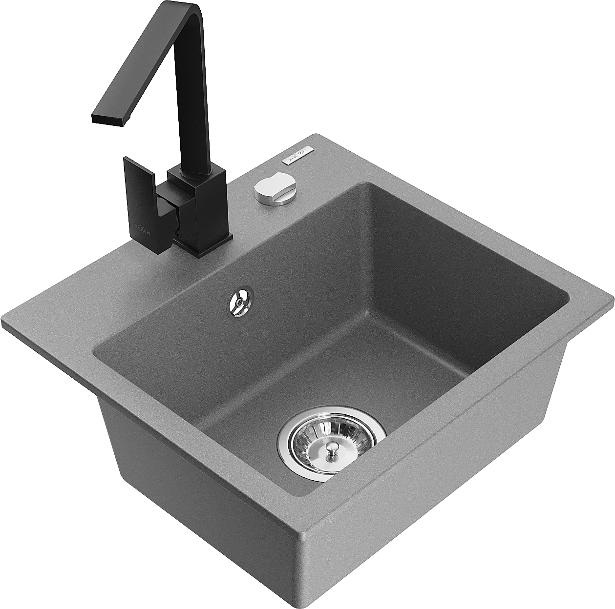 Mexen Milo zlewozmywak granitowy 1-komorowy z baterią kuchenną Rita, szary - 6505-71-670300-70