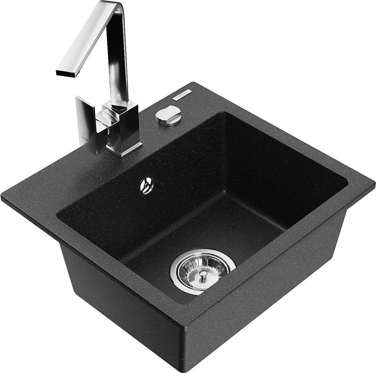 Mexen Milo zlewozmywak granitowy 1-komorowy z baterią kuchenną Rita, czarny/srebrny metalik - 6505-73-670300-00
