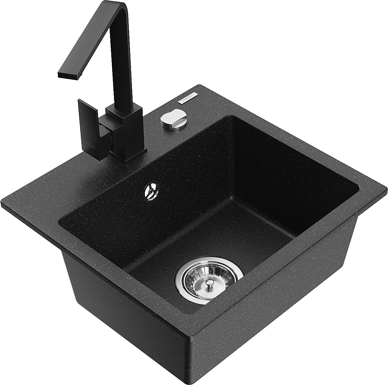 Mexen Milo zlewozmywak granitowy 1-komorowy z baterią kuchenną Rita, czarny/srebrny metalik - 6505-73-670300-70
