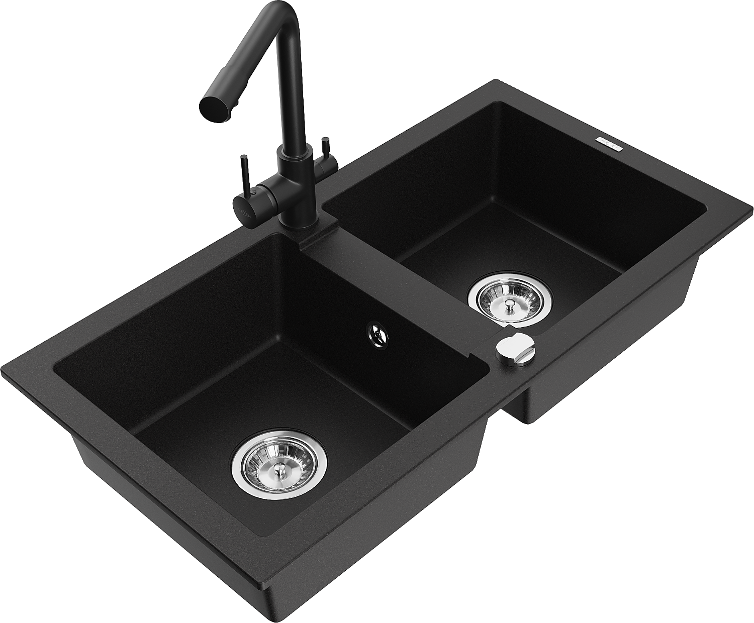 Mexen Mario zlewozmywak granitowy 2-komorowy z baterią kuchenną Duero, czarny - 6504-77-671600-70