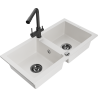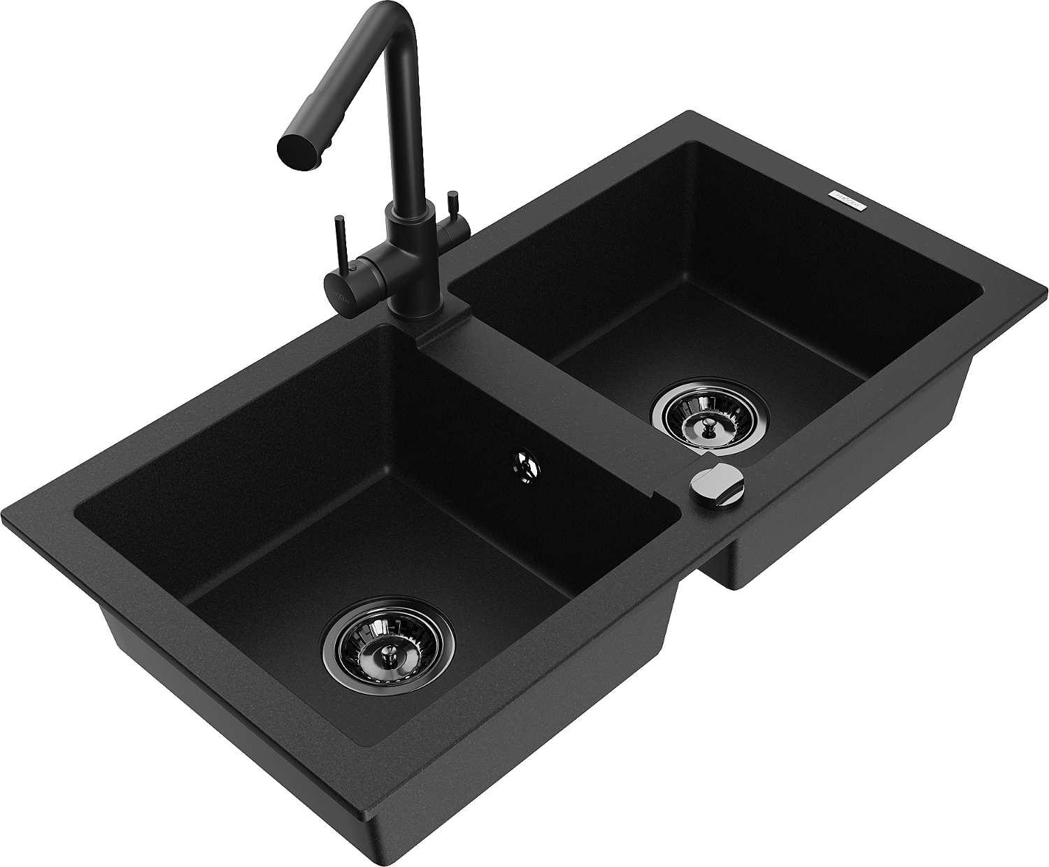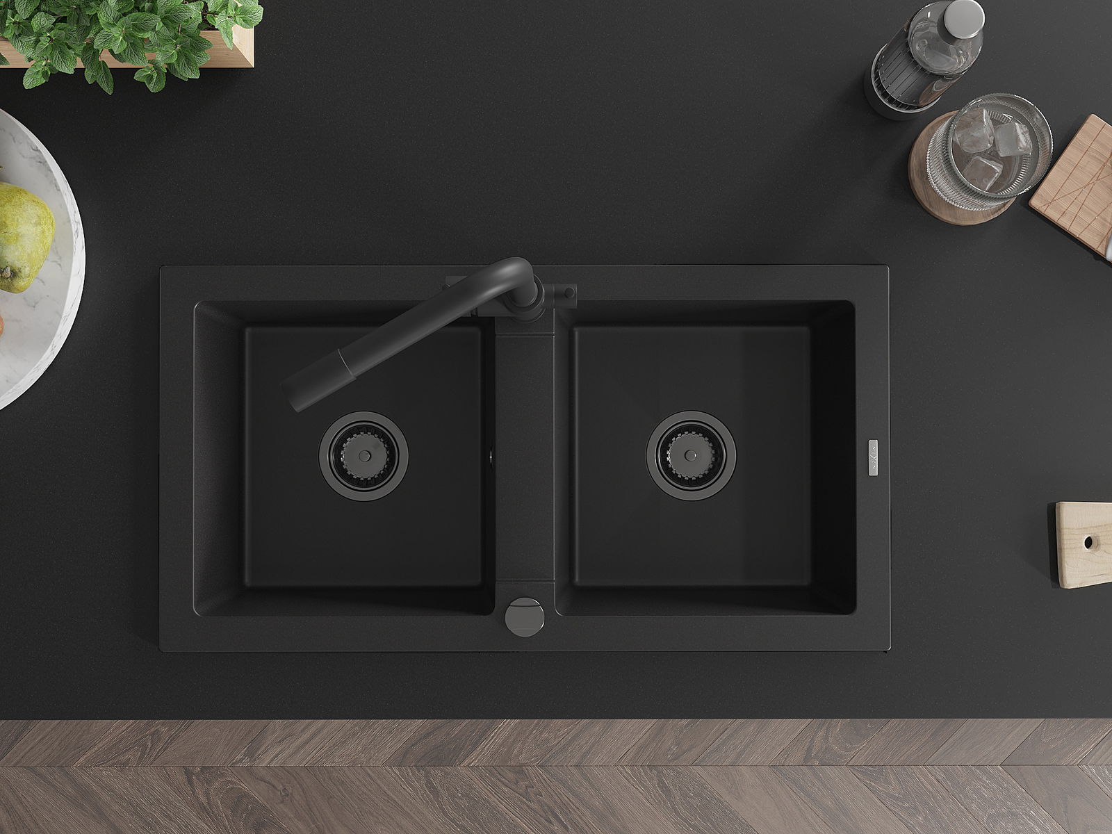 Mexen Mario zlewozmywak granitowy 2-komorowy z baterią kuchenną Duero, czarny - 6504-77-671600-70-B