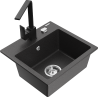 Mexen Milo zlewozmywak granitowy 1-komorowy z baterią kuchenną Rita, czarny/złoty metalik - 6505-75-670300-70