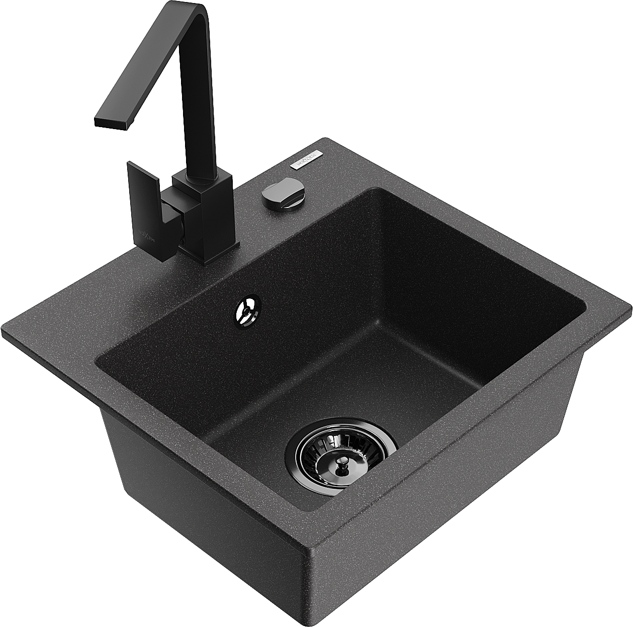 Mexen Milo zlewozmywak granitowy 1-komorowy z baterią kuchenną Rita, czarny nakrapiany - 6505-76-670300-70-B