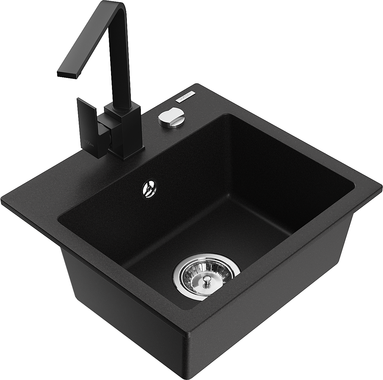 Mexen Milo zlewozmywak granitowy 1-komorowy z baterią kuchenną Rita, czarny - 6505-77-670300-70