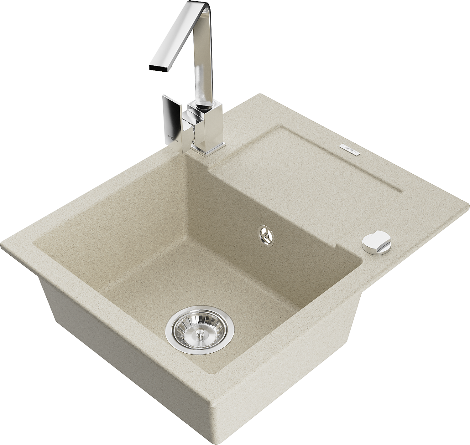 Mexen Enzo zlewozmywak granitowy 1-komorowy z ociekaczem i baterią kuchenną Rita, beżowy - 6506-69-670300-00
