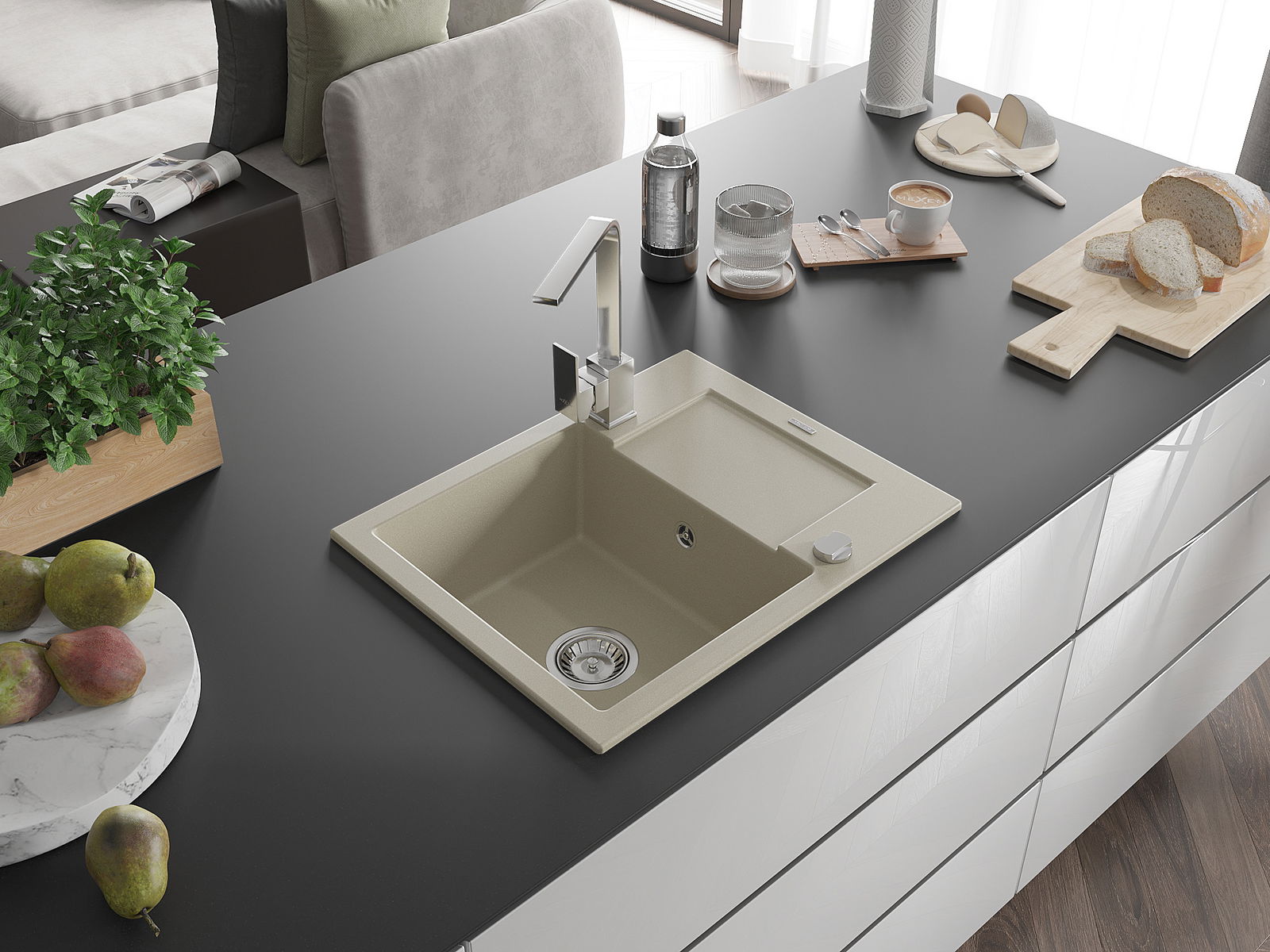 Zlewozmywak został wykonany z wysokiej jakości granitu. Stanowi eleganckie, a przede wszystkim praktyczne uzupełnienie każdej kuchni, niezależnie od jej stylu. Wysoka jakość oraz trwałość granitu zapewniają wieloletnie użytkowanie.