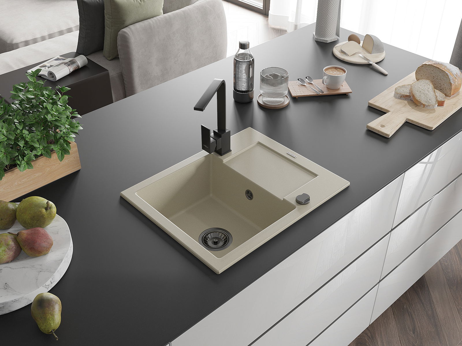Zlewozmywak został wykonany z wysokiej jakości granitu. Stanowi eleganckie, a przede wszystkim praktyczne uzupełnienie każdej kuchni, niezależnie od jej stylu. Wysoka jakość oraz trwałość granitu zapewniają wieloletnie użytkowanie.
